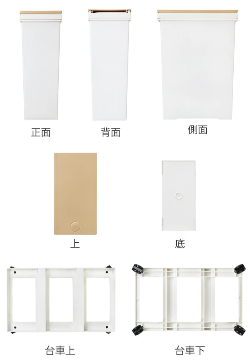| 材質 | 本体・台車:ポリプロピレン バネ:ステンレス キャスター:ポリプロピレン、ポリアミド |