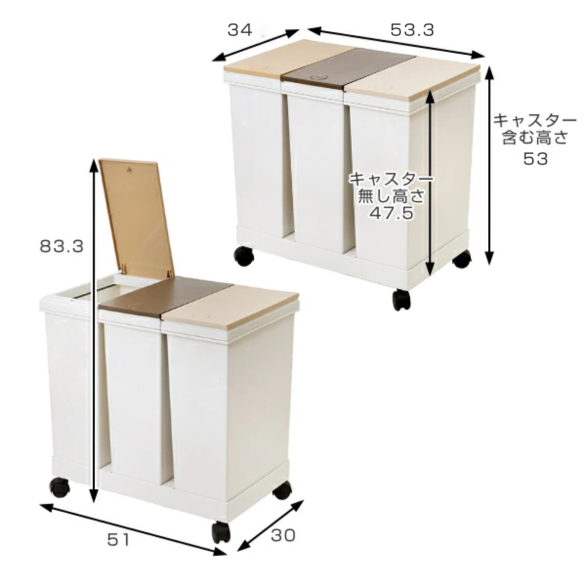 | サイズ | 約 幅53.3×奥行34×高さ53(cm) 1個あたりのサイズ:約 幅17×奥行34×高さ46.5(cm) |