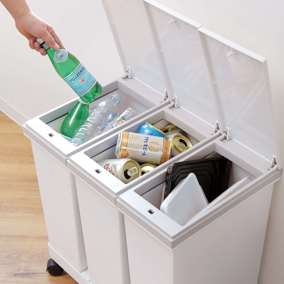 20L×3個セットのゴミ箱なので、ペットボトルや缶、プラスチックゴミなどを分別して捨てることができます。ふたの色でゴミ箱を見分けられるのでご家族の誰でも分別が簡単です。