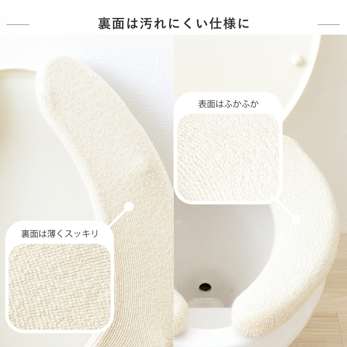裏面はパイルを薄く仕上げ、汚れが絡みにくくなっています。清潔を保つ工夫が施されています。