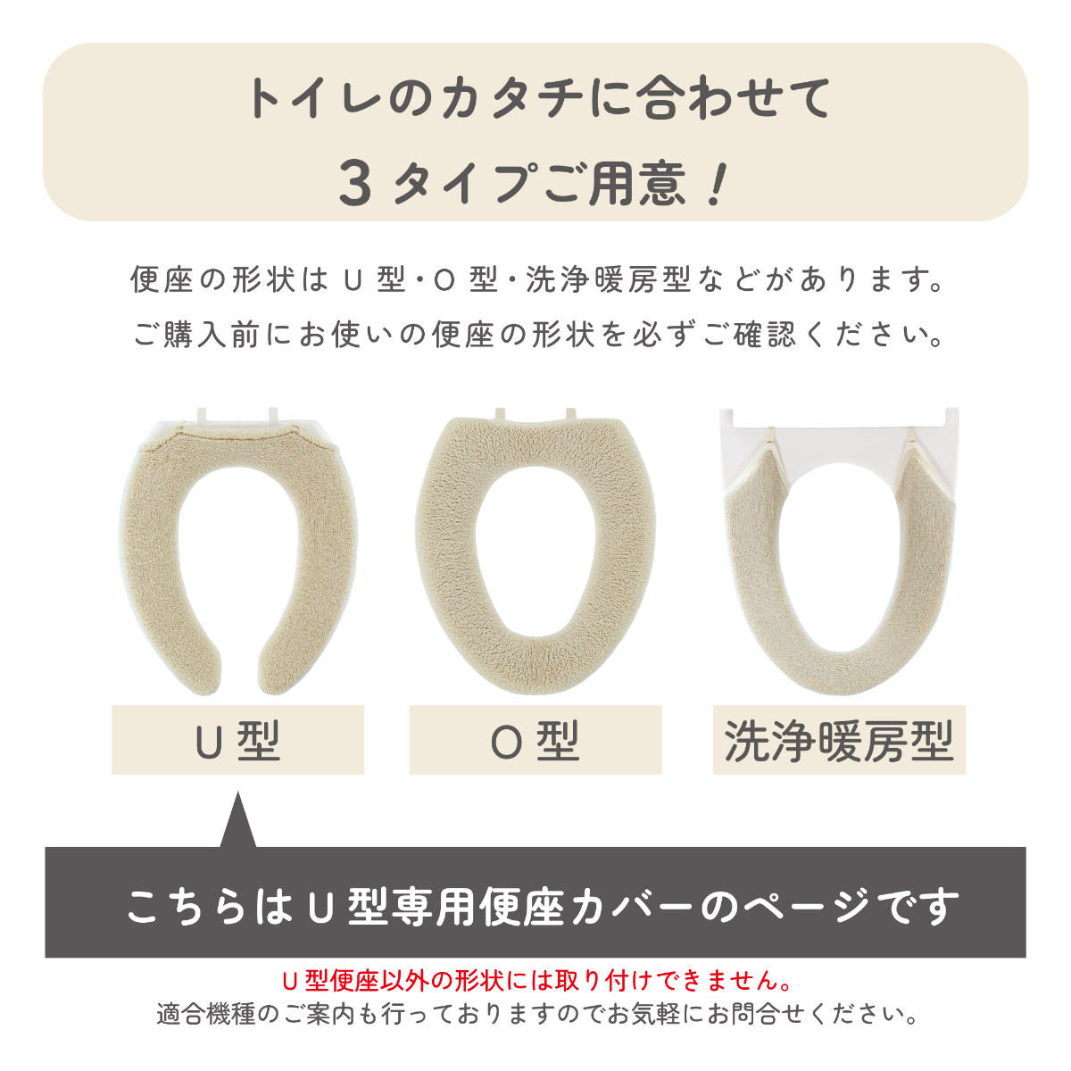 ![]() 便座カバー U型 【▲このページの商品】 | ![]() 便座カバー O型 | ![]() 便座カバー 洗浄・暖房型 |