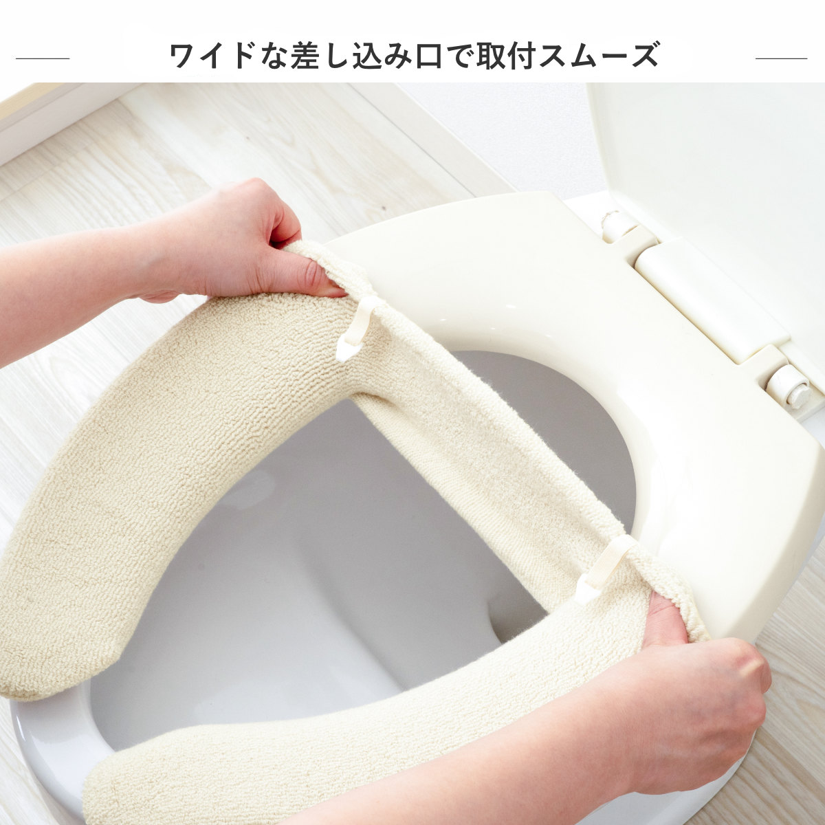 優れた伸縮性でカタチにぴったりフィットする、U型専用の便座カバーです。大きめの差込口で簡単に装着できます。さらに、ポリウレタン10%配合の弾性糸でよく伸び、快適にご使用いただけます。