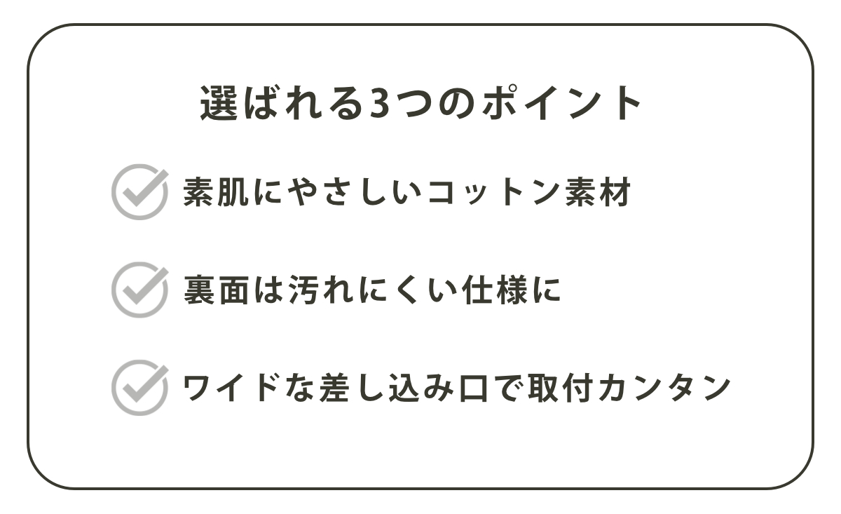幅広に作られた差し込み口と、高い伸縮性でどなたでもスムーズに取付できます。