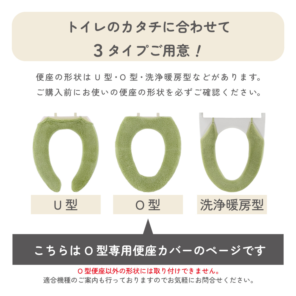 ![]() 便座カバー U型 | ![]() 便座カバー O型 【▲このページの商品】 | ![]() 便座カバー 洗浄・暖房型 |