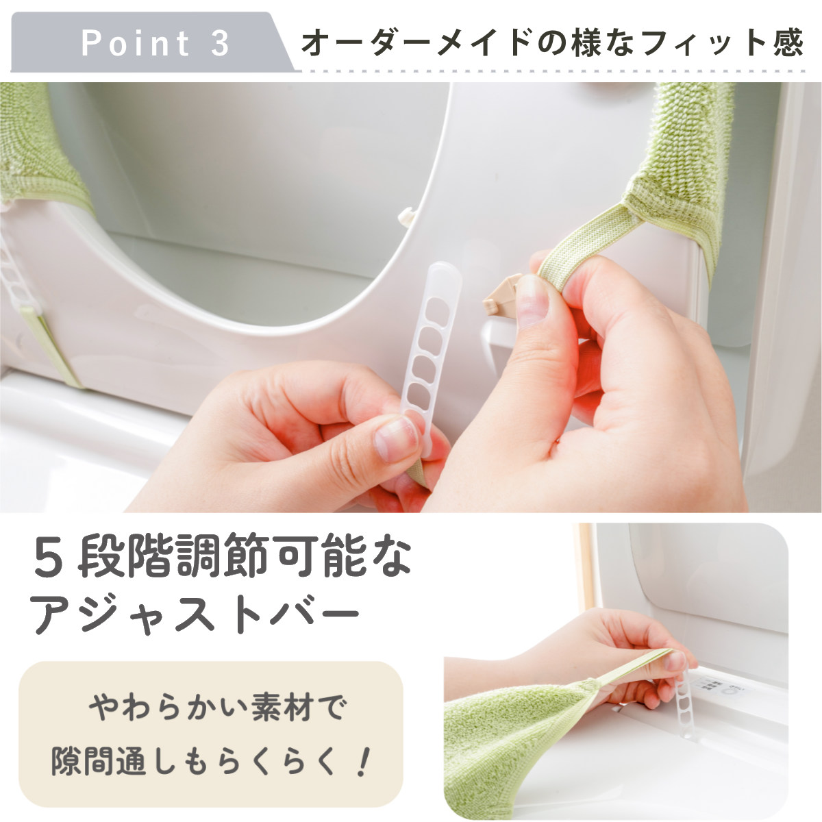優れた伸縮性でカタチにぴったりフィットする、洗浄暖房型専用の便座カバーです。コットン素材で素肌に寄りそう心地よさを実現。さらりとした肌ざわりでリラックスできるトイレ空間を提供します。