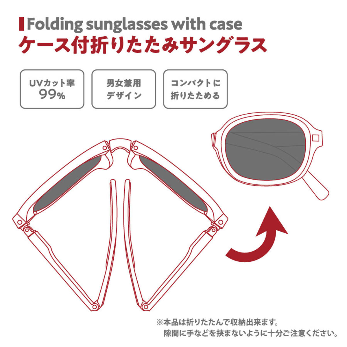 ●小さく折りたためて持ち運びに便利なサングラスです。