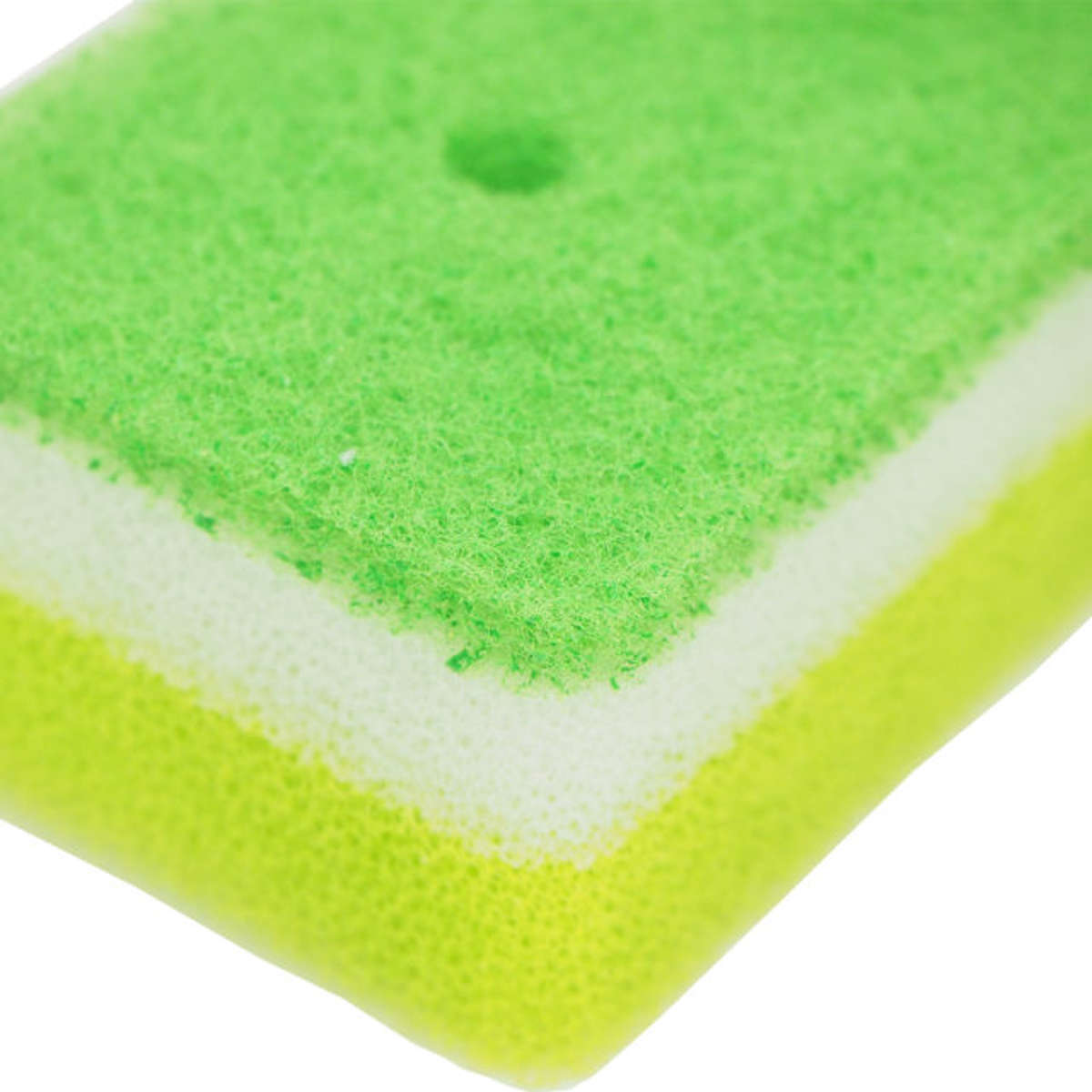 キズをつけずに汚れを落とすナイロン不織布、泡もちと洗剤含みの良い中間層、水切れが良く丈夫なスポンジ層で構成された3層構造です。汚れ落ち・泡立ち・乾きやすさのバランスが良く、毎日の食器洗いが快適になります。