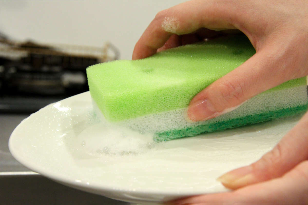 泡立ちが良く洗いやすい一方で、水切れにも優れ乾きやすい構造です。ソフトな素材で、食器やフッ素加工のフライパンにも安心して使えます。