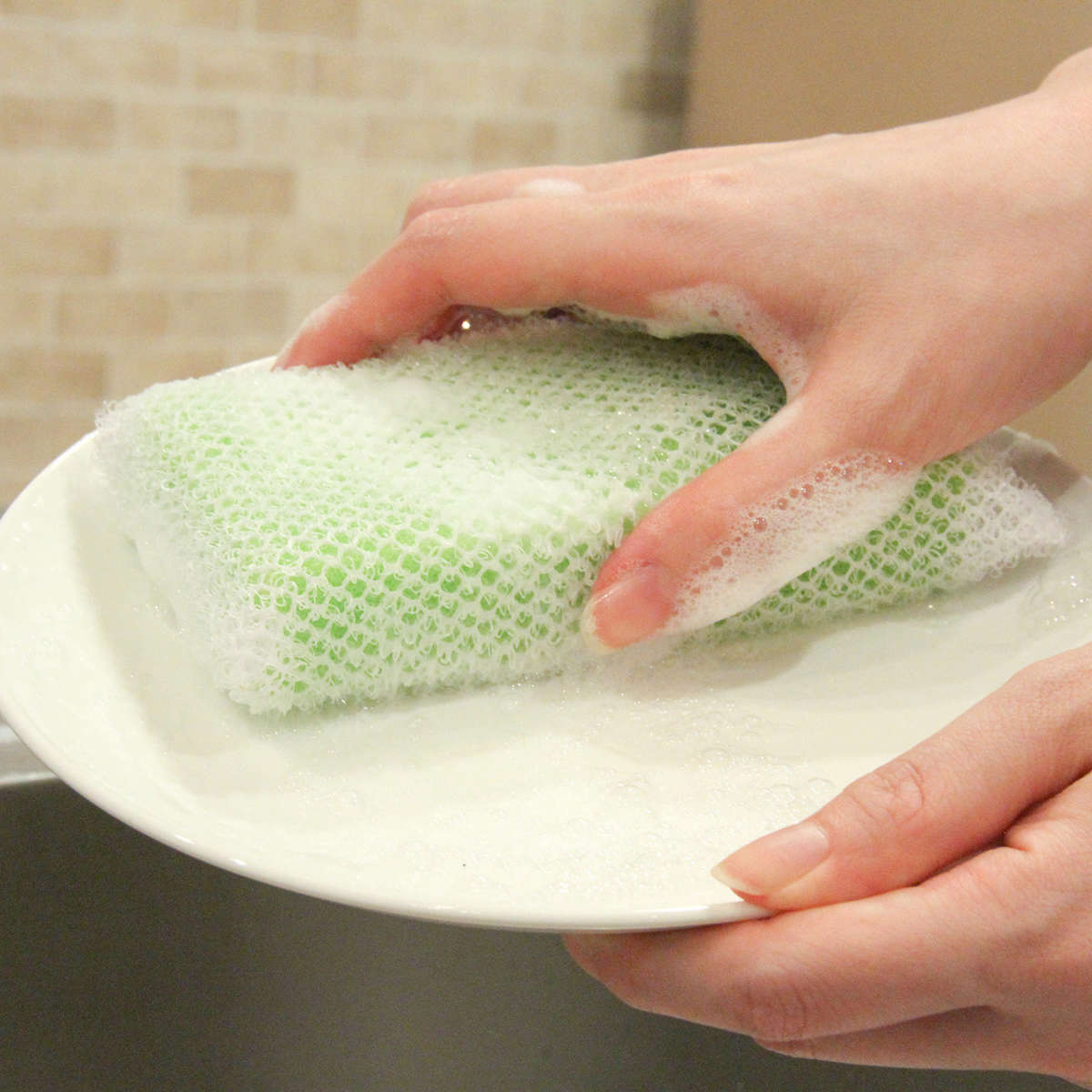 外側ネットが汚れをしっかりキャッチし、内側スポンジが泡をキープします。少ない洗剤でもしっかり洗えて、毎日の食器洗いがラクになります。