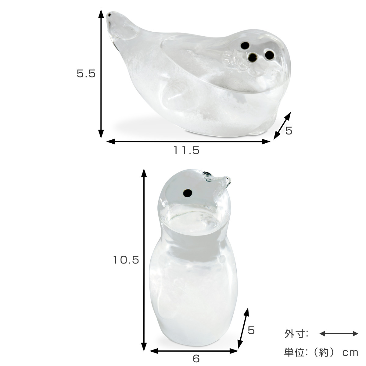 | サイズ | 【アザラシ】 約 幅11.5×奥行5×高さ5.5cm 【ペンギン】 約 幅6×奥行5×高さ10.5cm |