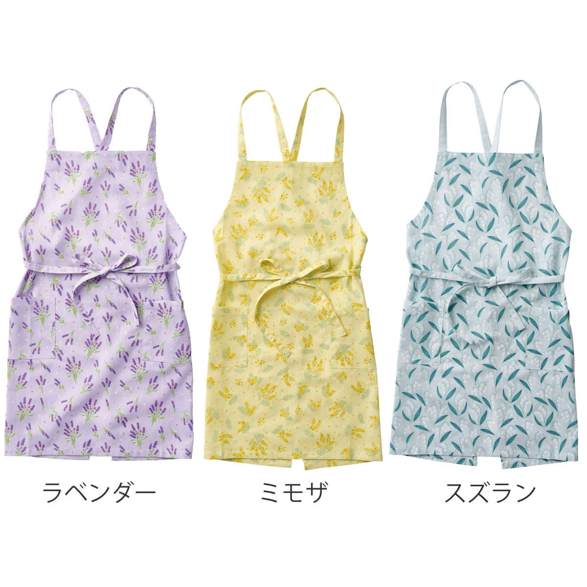 ●親しまれている3種類の花をモチーフにした、上品なフラワーデザインのエプロンです。
