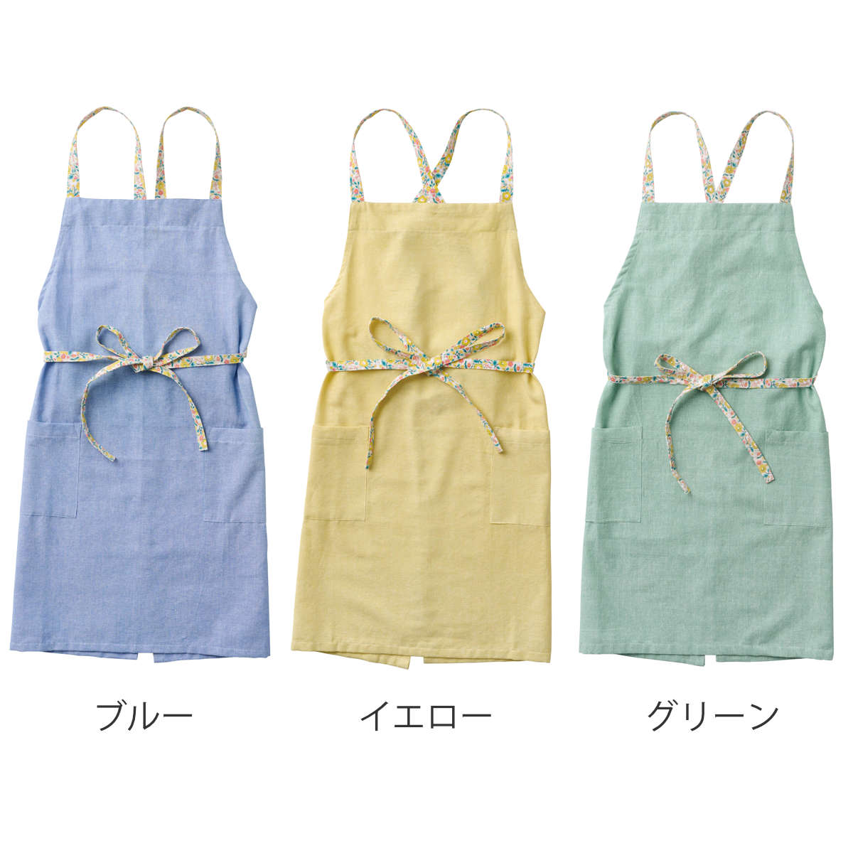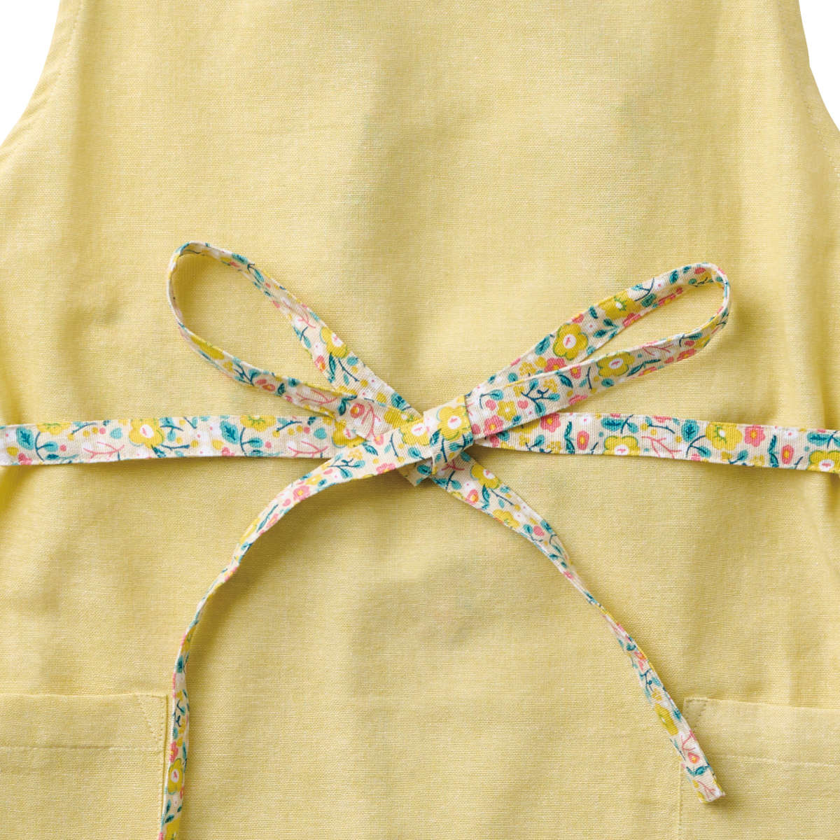 前で結ぶタイプなので体にフィットしやすく、作業中もずれにくいのが特長です。スマホやハンカチ、メモ帳などを入れられる便利なポケットが両サイドに付いており、家事がよりスムーズに行えます。