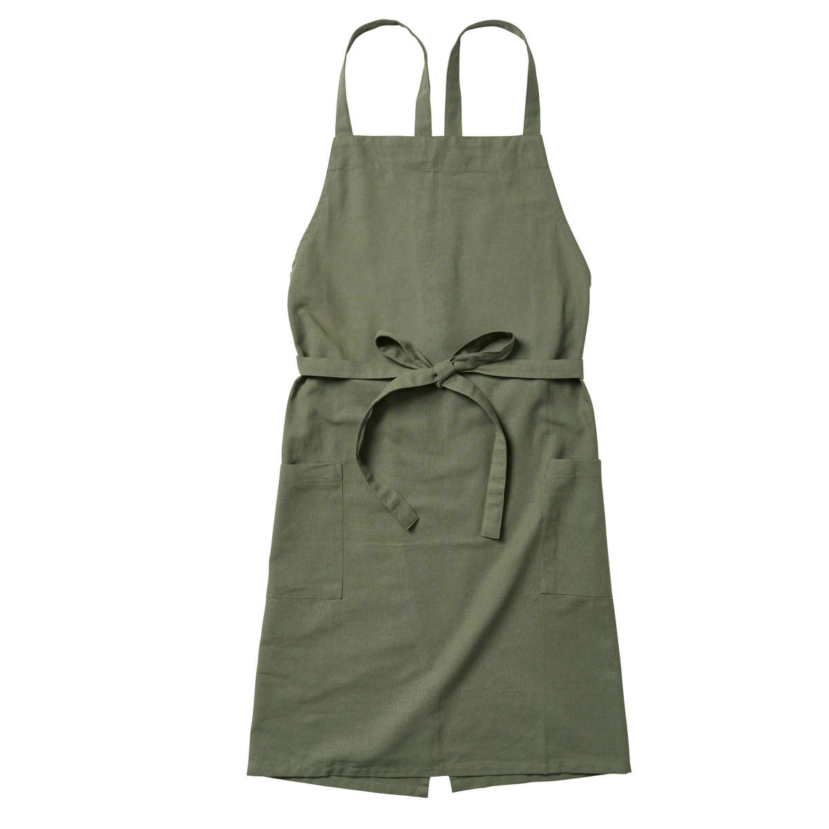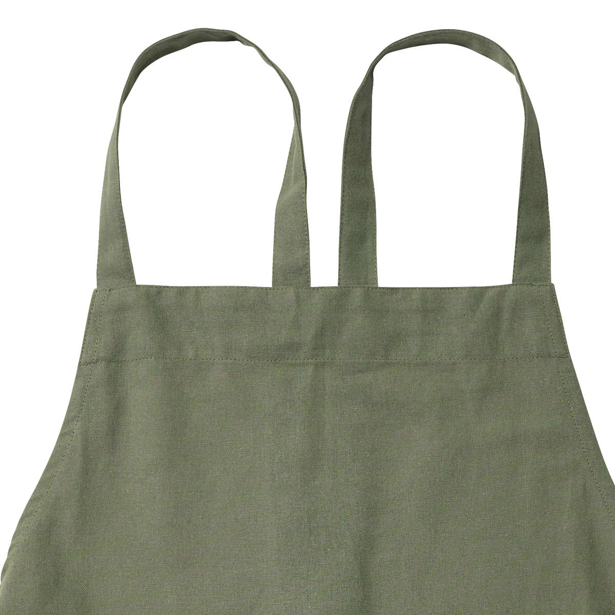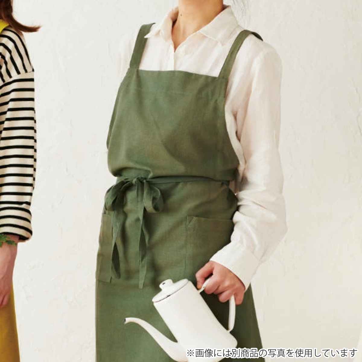 体型を選ばないユニセックスなサイズ感のエプロンです。女性が着ればオーバーサイズな着こなしに、男性でも窮屈感なく快適にご着用いただけます。ご家族とのシェアや、贈り物にもおすすめです。
