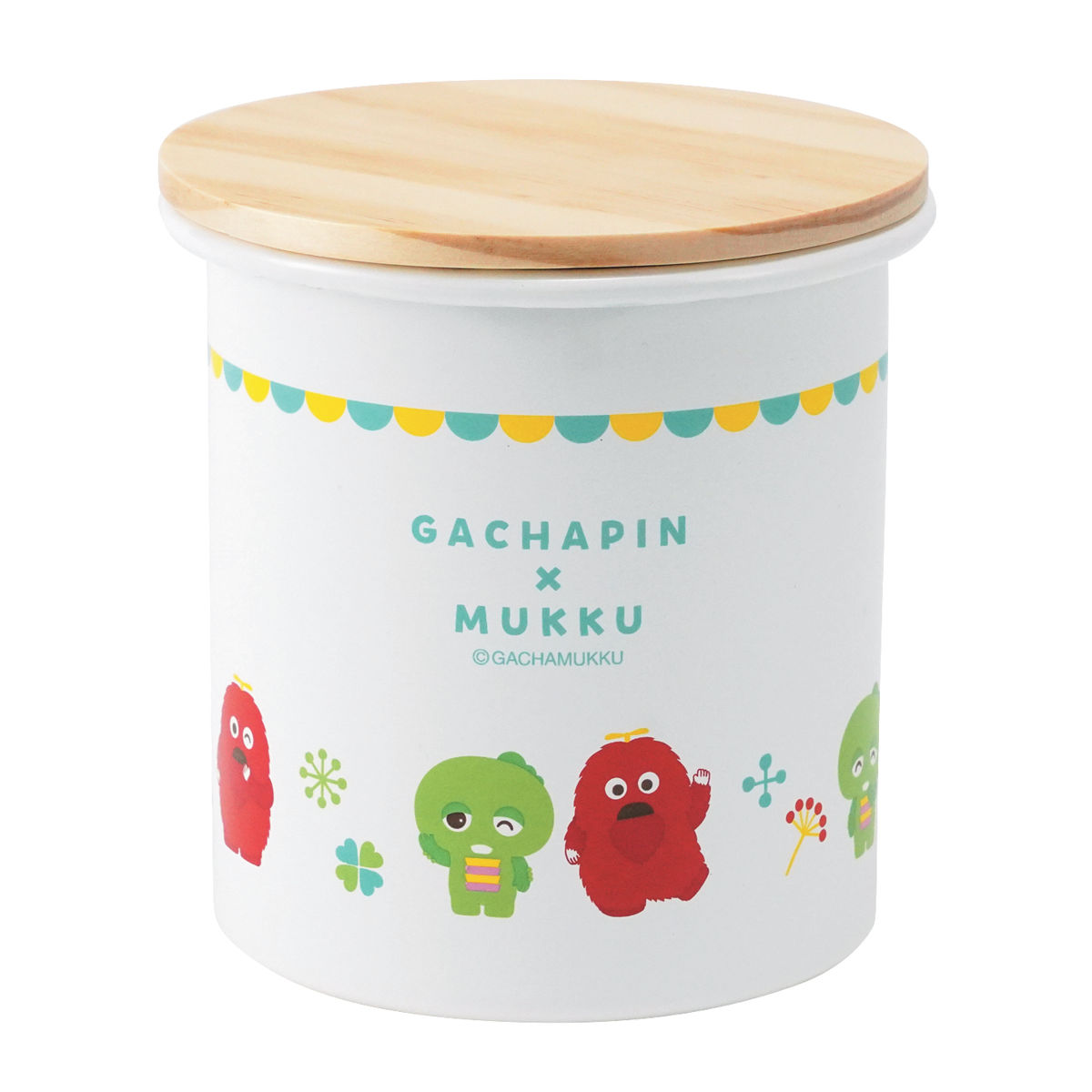 ガチャピンとムックのデザインがかわいいホーロー製の保存容器です。お菓子やお砂糖、コーヒー豆などのストックにちょうど良いサイズです。蓋には木目の美しい天然木を使用しており、自然の風合いをお楽しみいただけます。