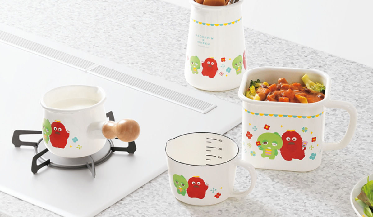 ガチャピンとムックが北欧風のテイストに。草花や瑞々しいフルーツなどナチュラルなモチーフを取り入れたとってもキュートなキッチンウェアシリーズです。シンプルでキュートなデザインは、生活に溶け込みやすく、日常使いにピッタリです。