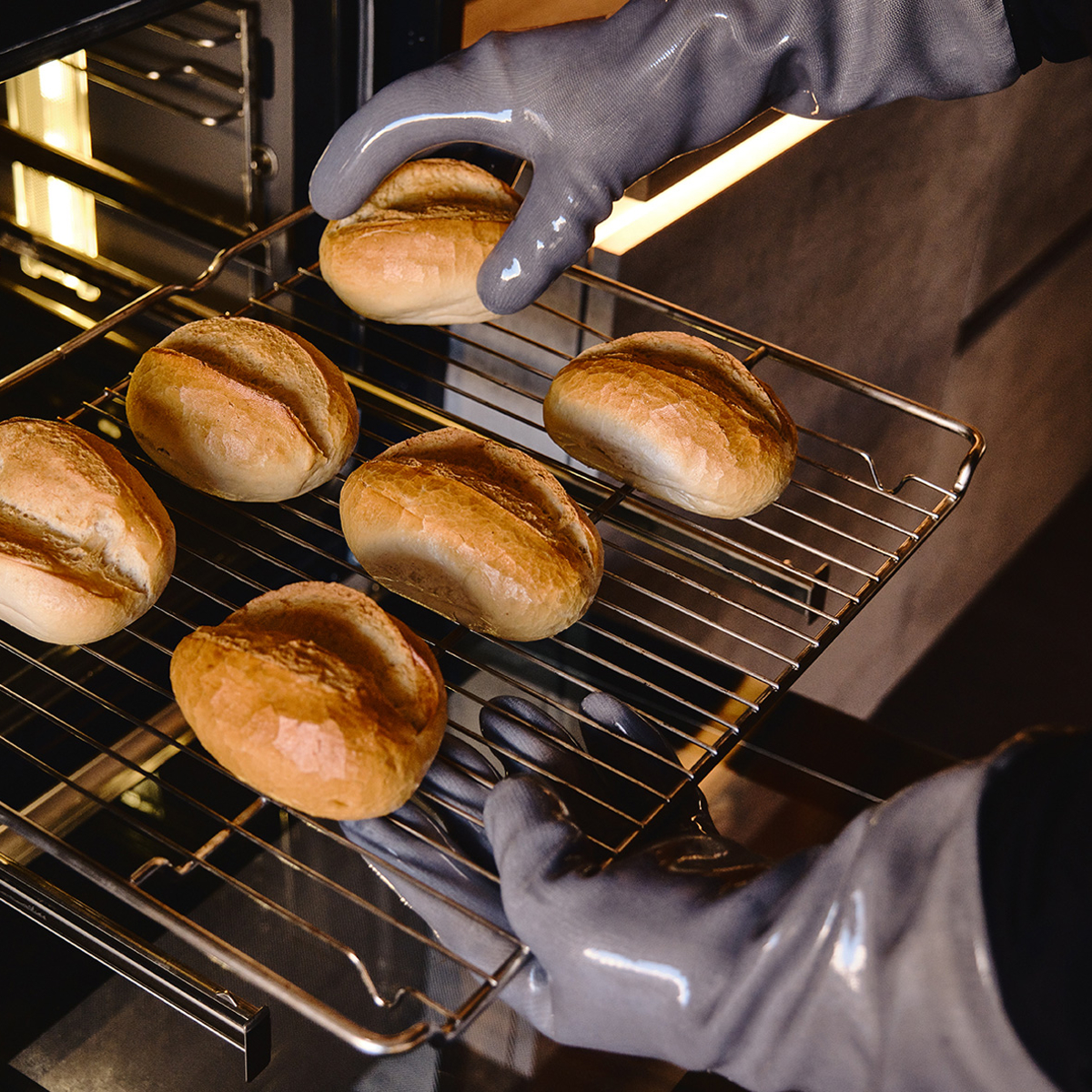 ●オーブン調理から冷凍食品の扱いまで幅広く対応できるキッチングローブです。