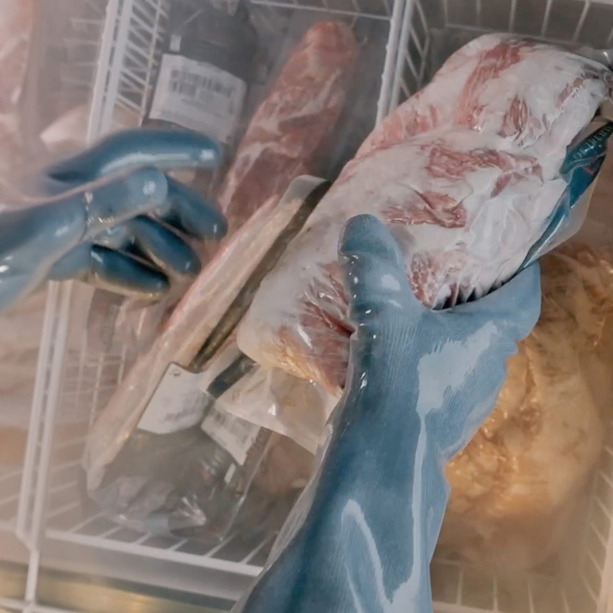 耐冷-40度で氷や冷凍食品の扱いもラクラクです。手が冷たくならず快適に作業できます。