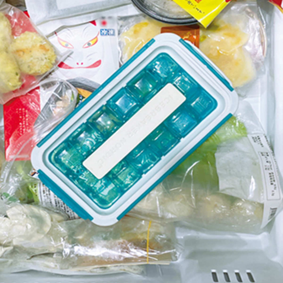 冷凍庫での収納はタテ・ヨコ・斜めに自在に収納できます。省スペースで効率的に整理できるので、庫内をすっきり使えて取り出しもラクになります。