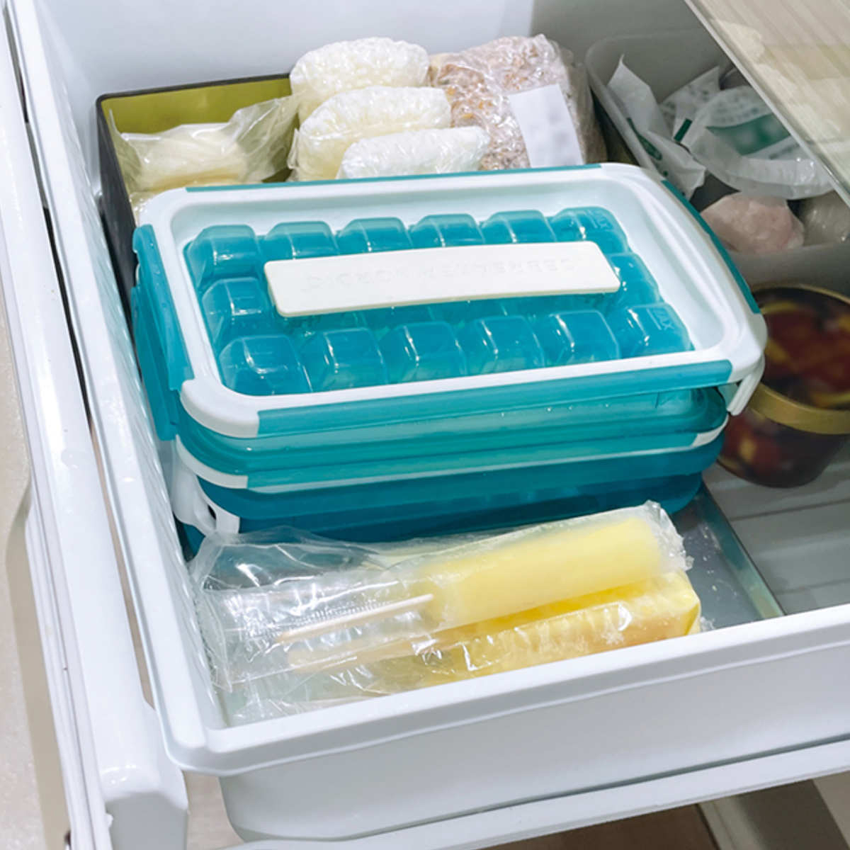 ●冷凍庫ではタテヨコどちらでも置けるため、スペースを取らず邪魔になりません。
