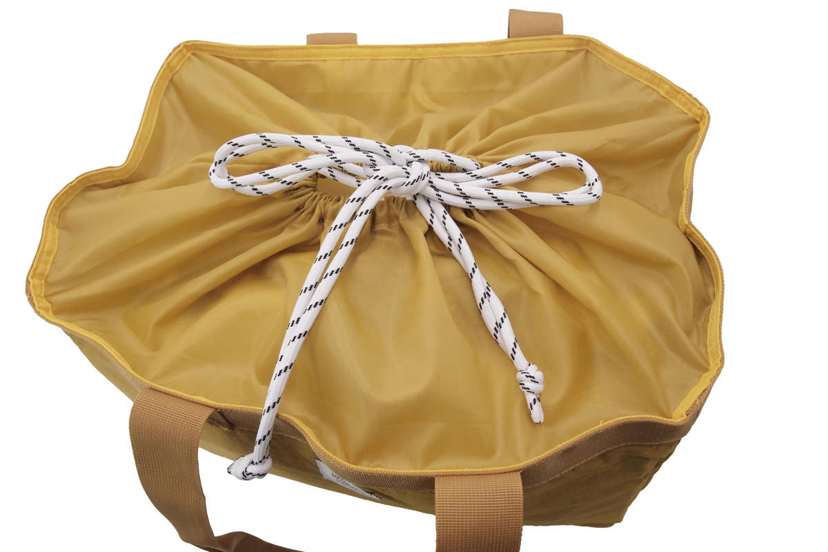 巾着タイプなので、荷物が多くなっても開口部が空いたままにならず、中に入れた物がはみ出たり、落ちたりせずに収納した物を守ります。目隠しとしても大活躍。また、冷気を逃しにくい効果もあります。