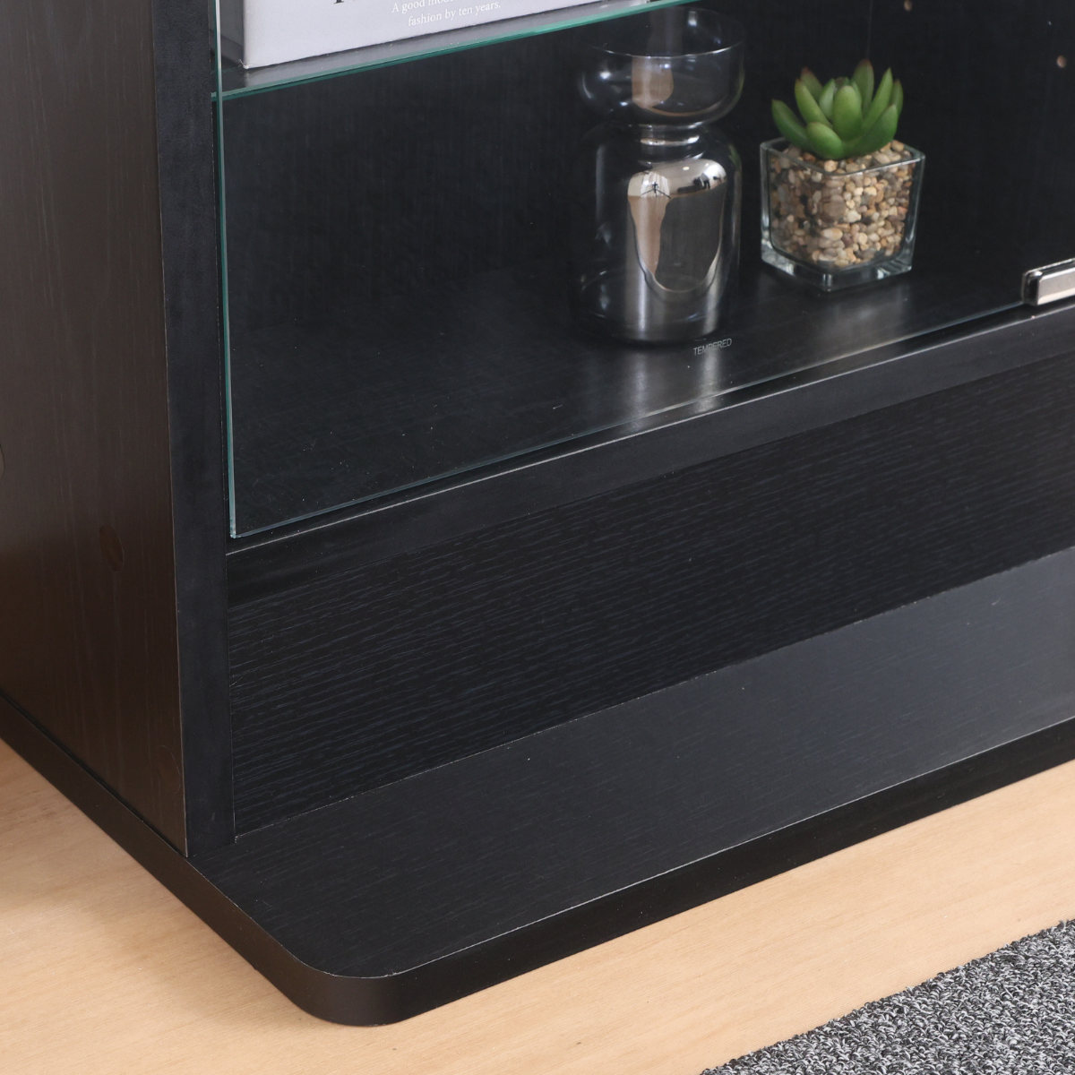 - 本体:プリント紙化粧繊維板 棚板・扉:強化ガラス
