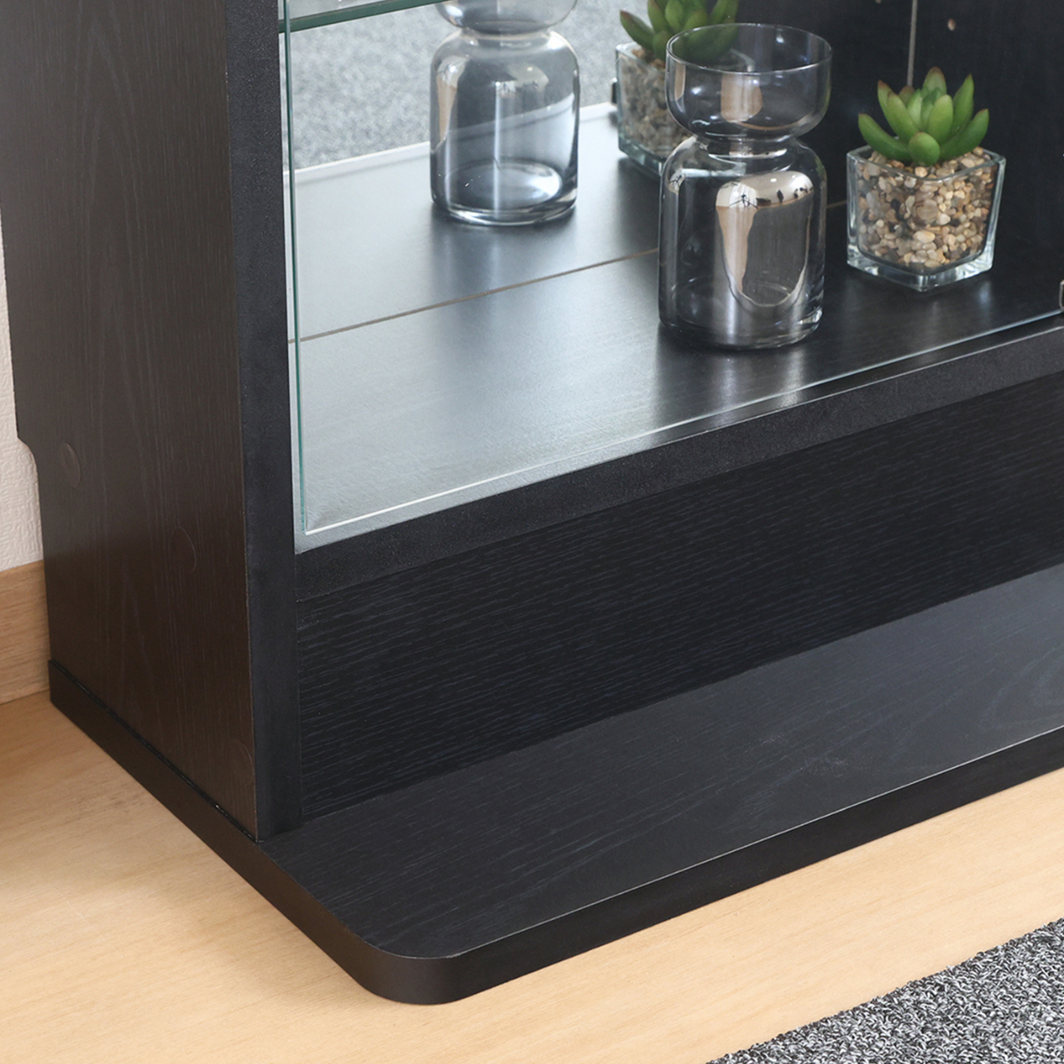 お気に入りのコレクションを様々な角度から楽しめる背面ミラー仕様。ミラーとガラス棚板が光を反射し、背面まで美しく映し出し、コレクションの魅力を余すことなく引き立てます。
