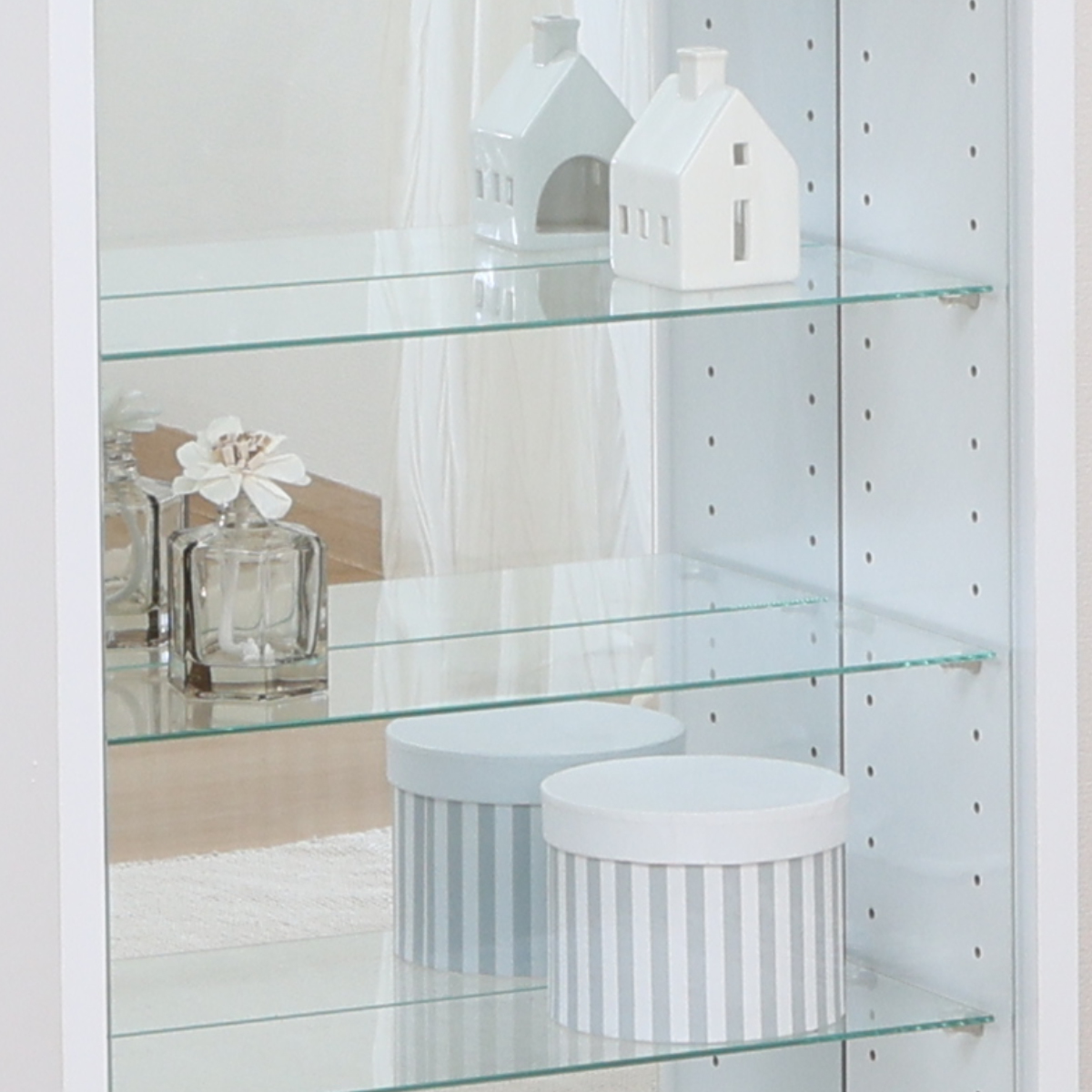 | 材質 | 本体:プリント紙化粧繊維板 棚板・扉:強化ガラス 背面ミラー:ガラス |