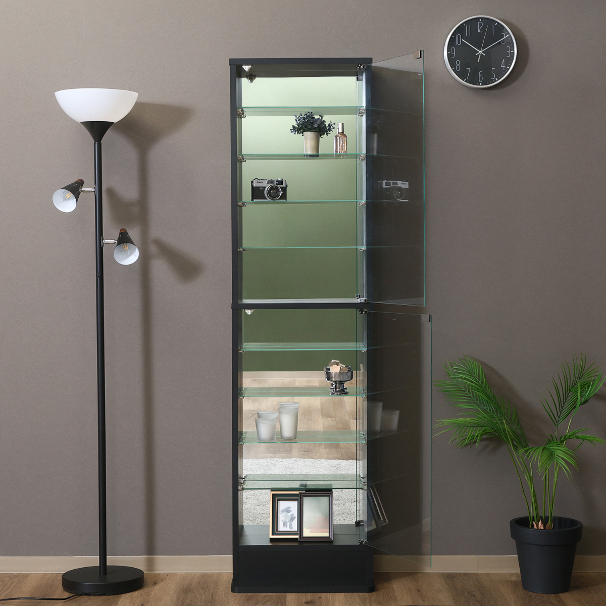 お気に入りのフィギュアやグッズを、美しく飾れるコレクションケースです。強化ガラス扉仕様で、埃や汚れから大切なコレクションを守りつつ、いつでも眺められるのが魅力です。