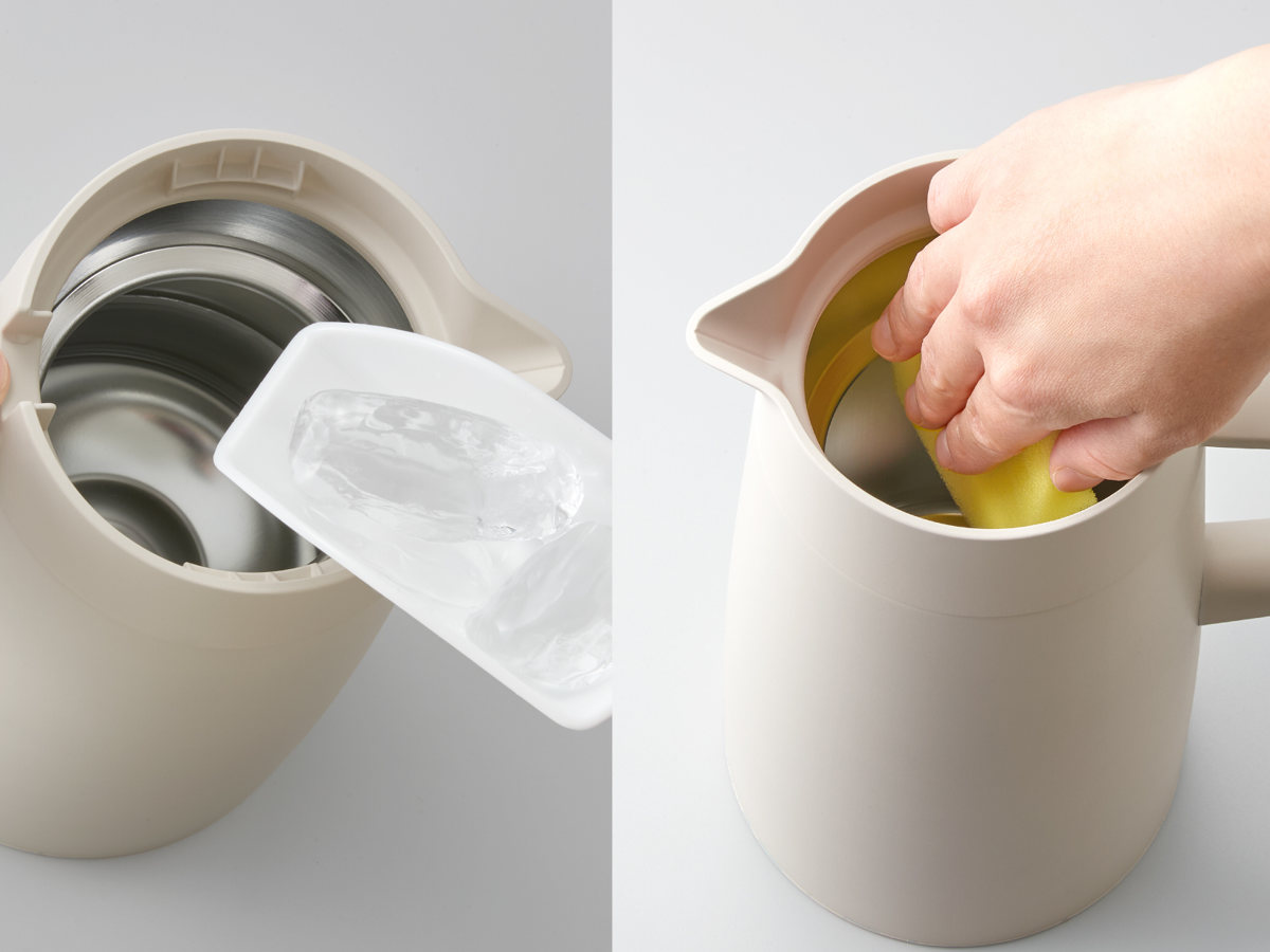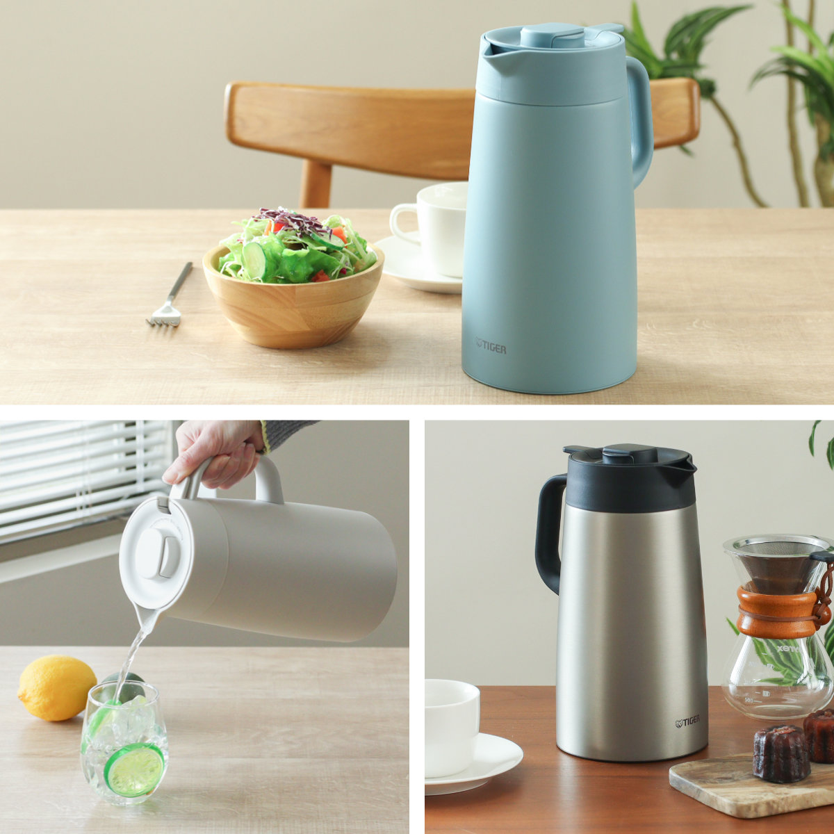 軽くて丈夫なステンレス製の真空二重構造により、高い断熱効果を発揮し、入れたての温度を長時間保ちます。朝入れたコーヒーやお茶はお昼になっても飲みごろの温度をキープし、電気を使わず省エネで、ダイニングやリビングでゆっくりと飲み物を楽しめます。