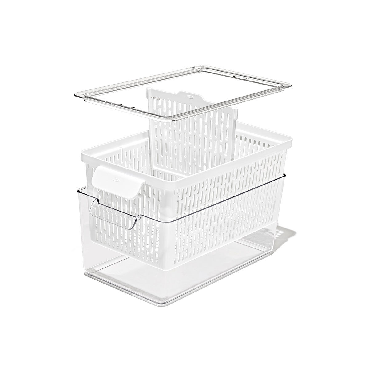 ざるとコンテナそれぞれにハンドルが付いているので、ざるを持ち上げてそのまま野菜を洗ったり、冷蔵庫内から取り出す際にも便利です。
