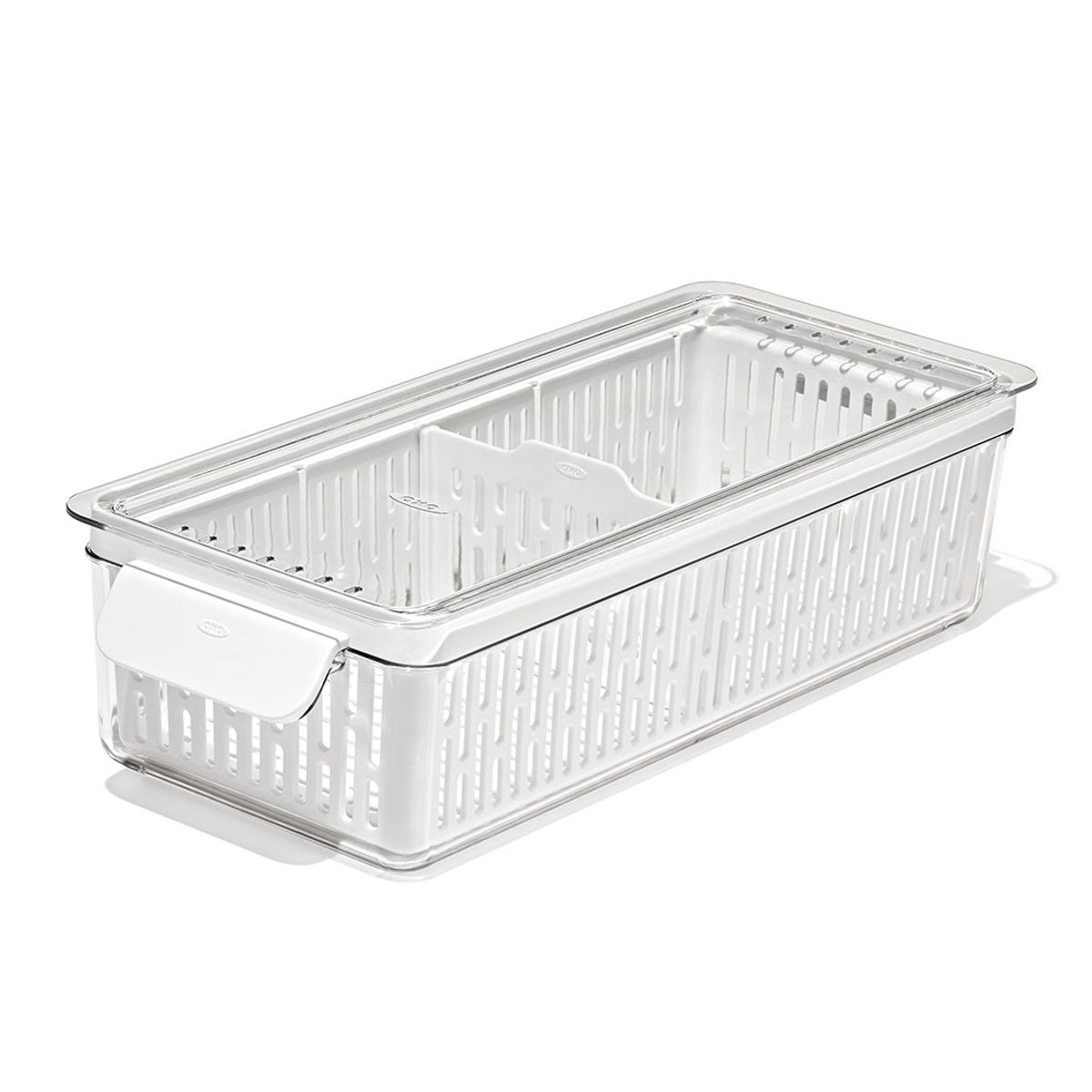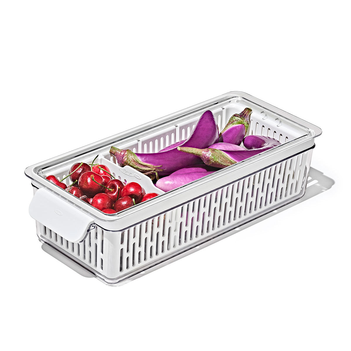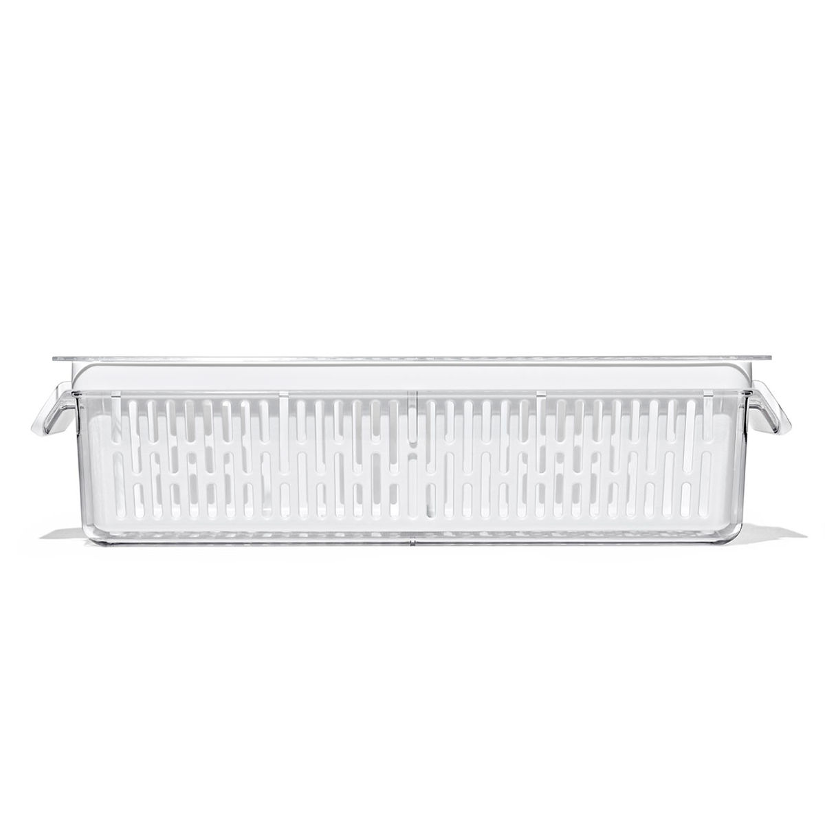 ●通気性よく野菜や果物を保管できる、ざる付きのクリアなコンテナロングサイズです。