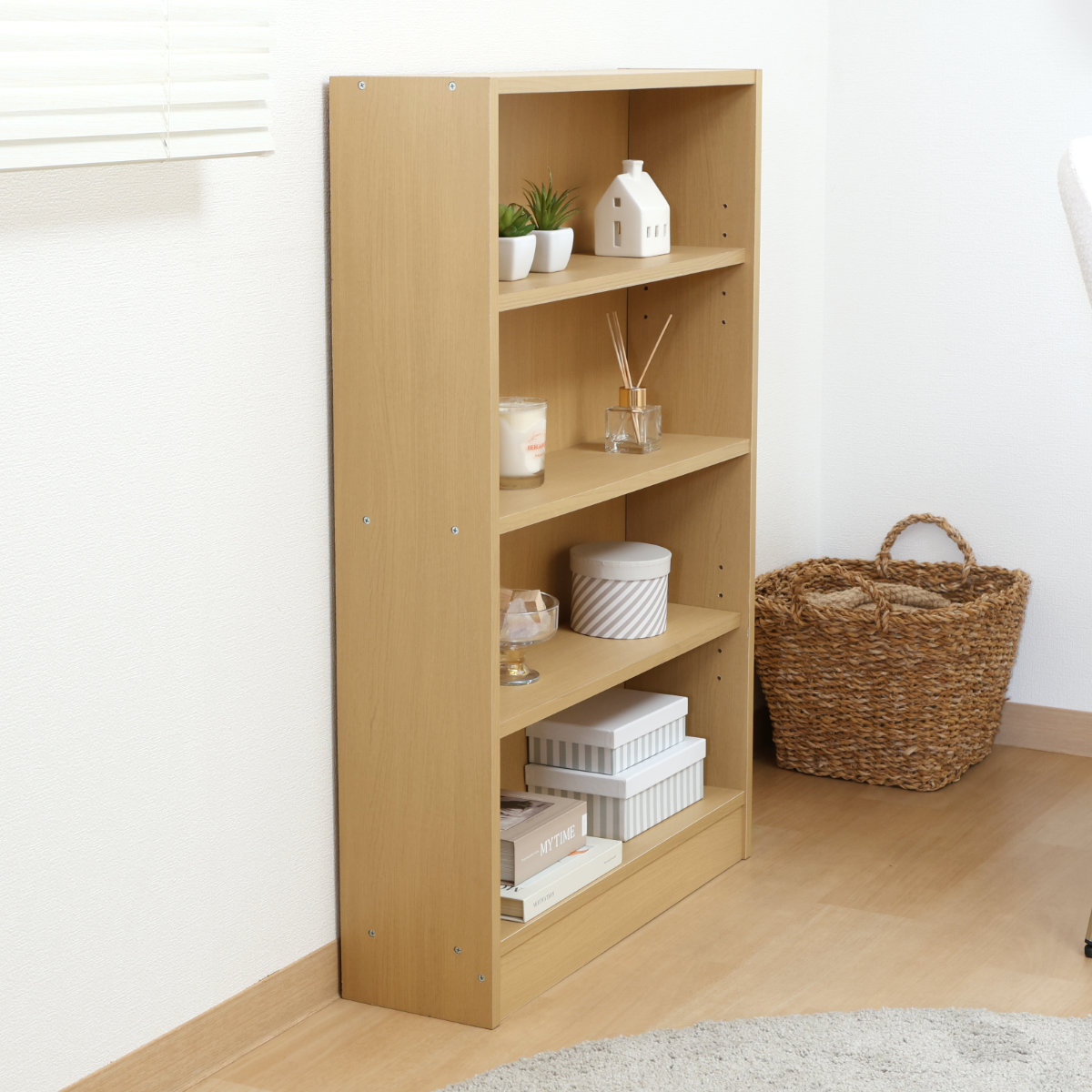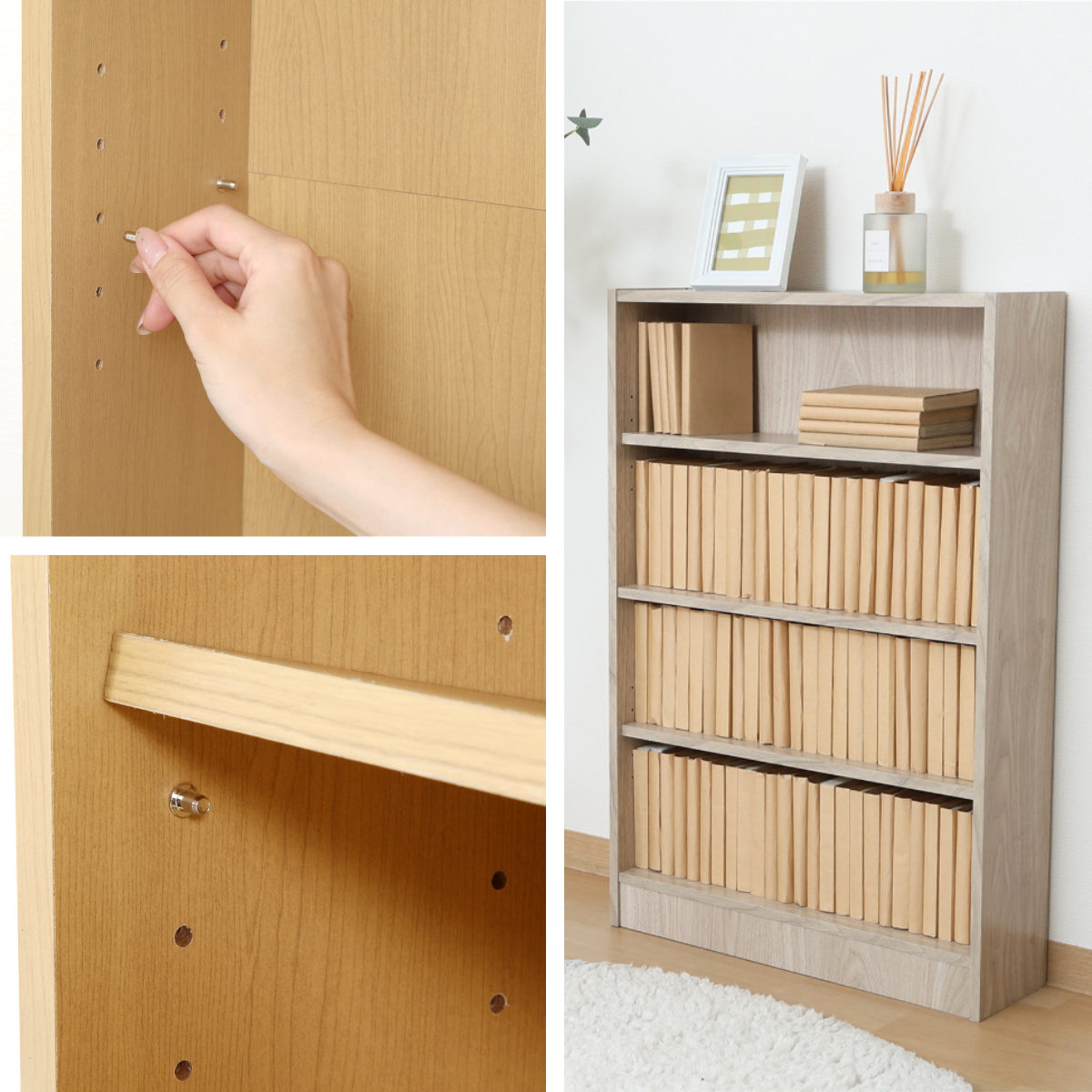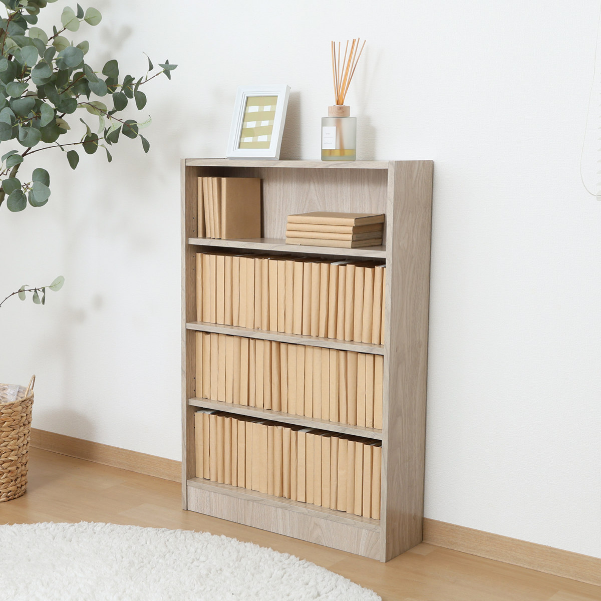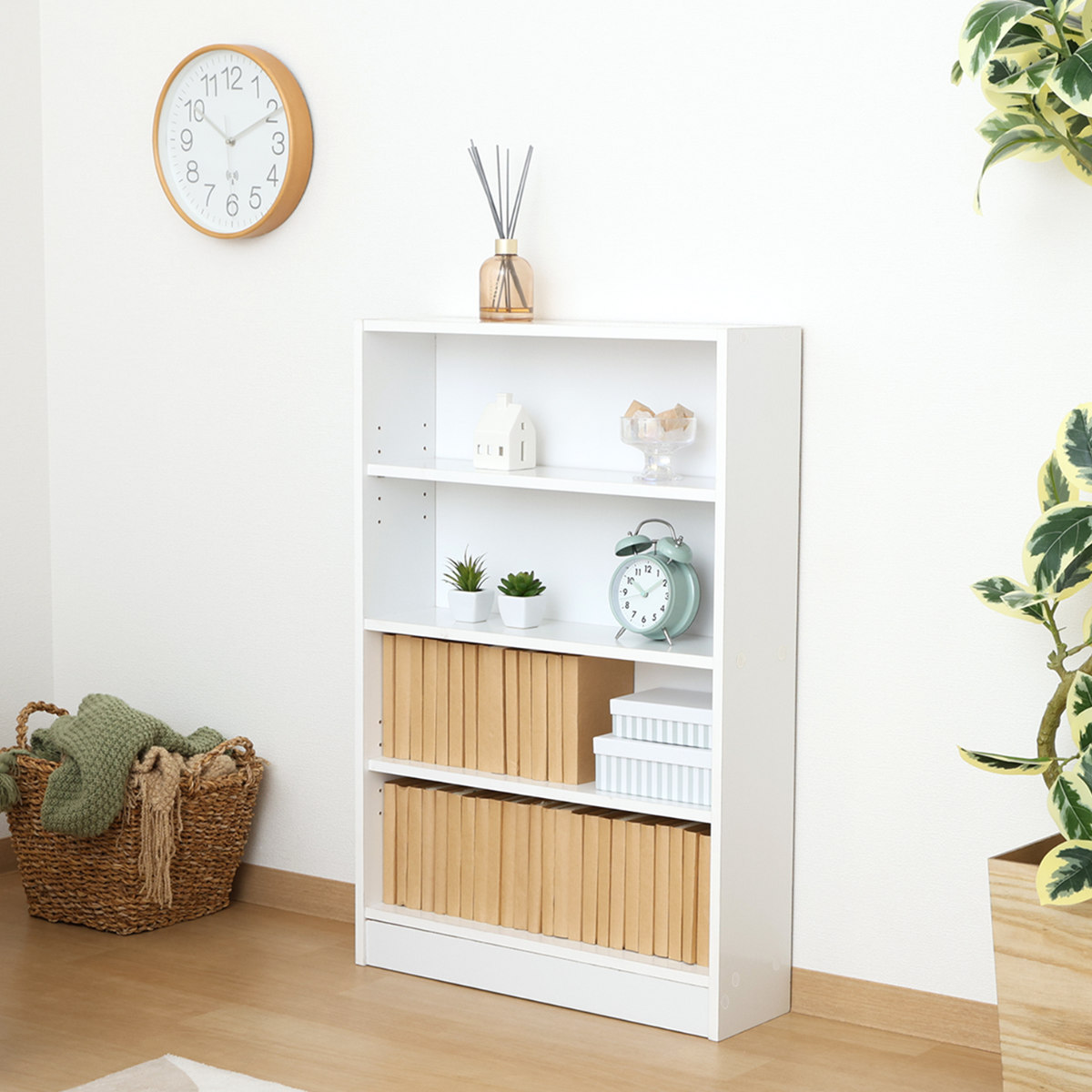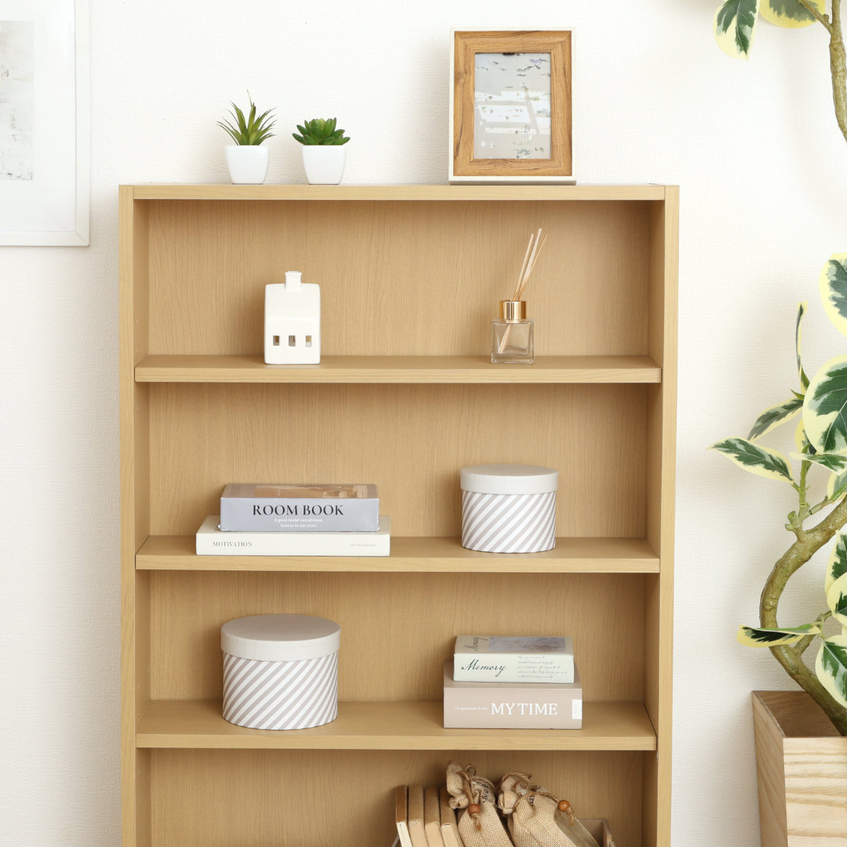 棚板は全部で4段。真ん中は固定棚で、上下は可動棚です。文庫本や単行本、CD・DVDなども収納物に合わせて無駄なく整理できます。