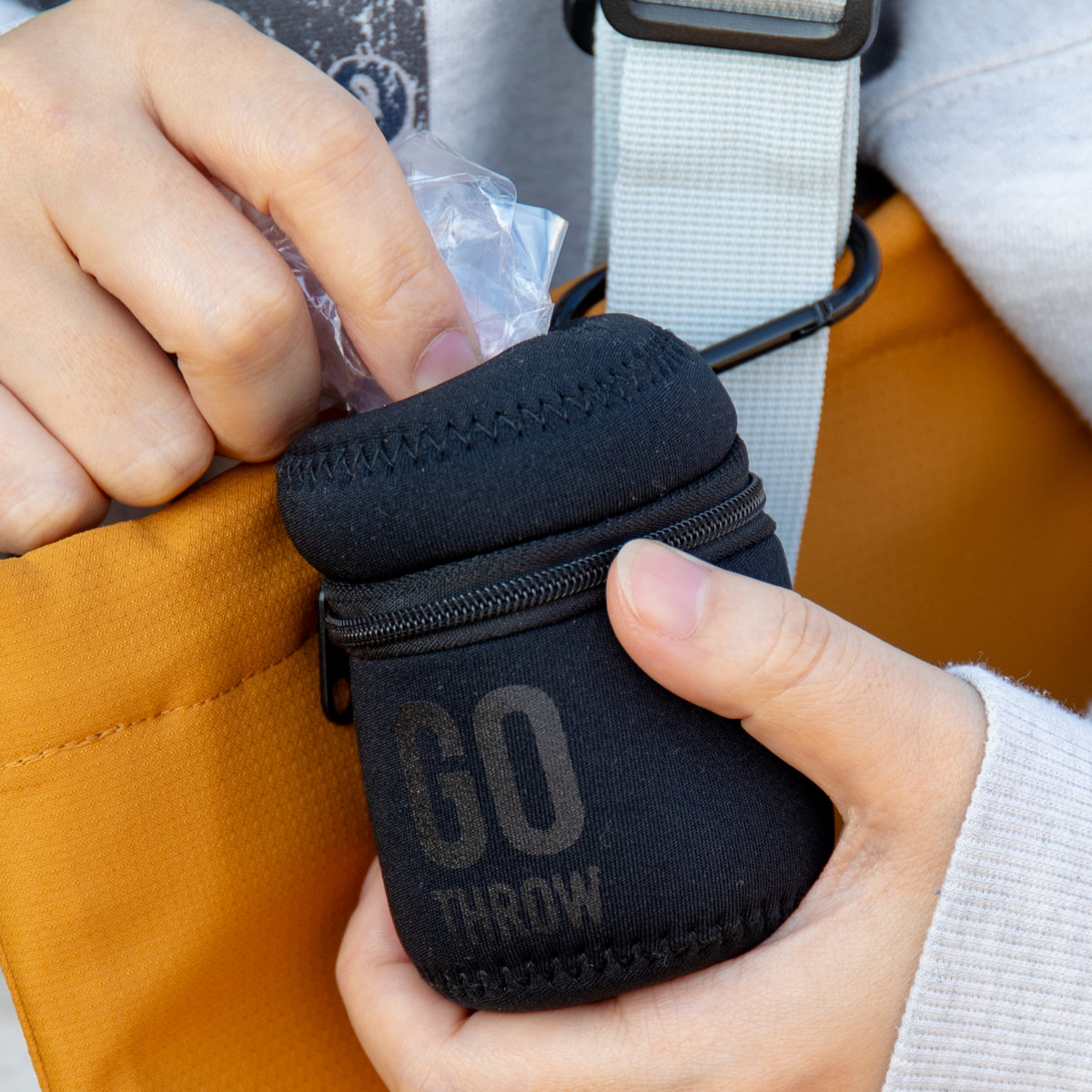 ファスナー付きなので、持ち運ぶ際に中身がこぼれる心配がありません。溜まったゴミも、ファスナーを開けて簡単に捨てられます。