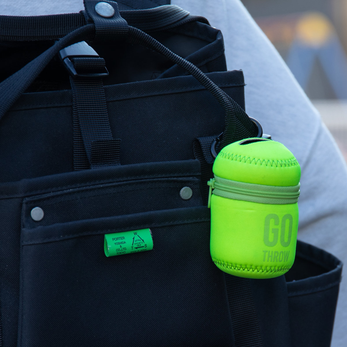 | 材質 | 表地・裏地:ポリエステル、中材:SBR、ファスナー:ナイロン、ポリエステル カラビナ:アルミニウム |