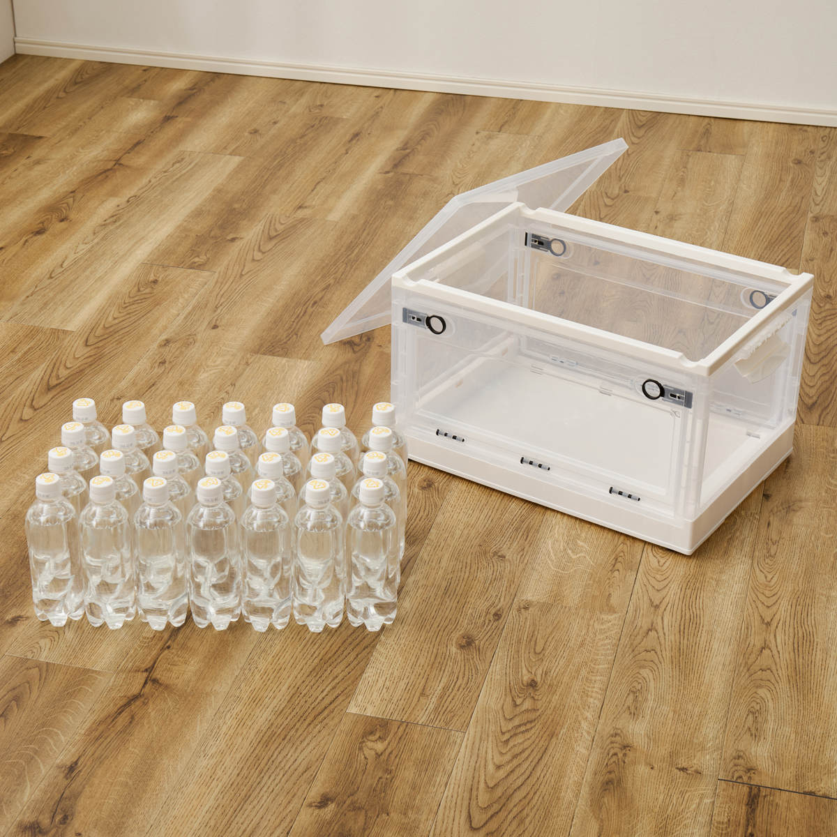 正面・背面・上部の3面から物を出し入れできる、使い勝手の良い収納ボックスです。カウンターなどの横に置いても、正面に回り込むことなくスムーズに出し入れが可能です。また、どちらのカラーも中身がほどよく見えるクリアタイプのため、収納物をひと目で確認できます。