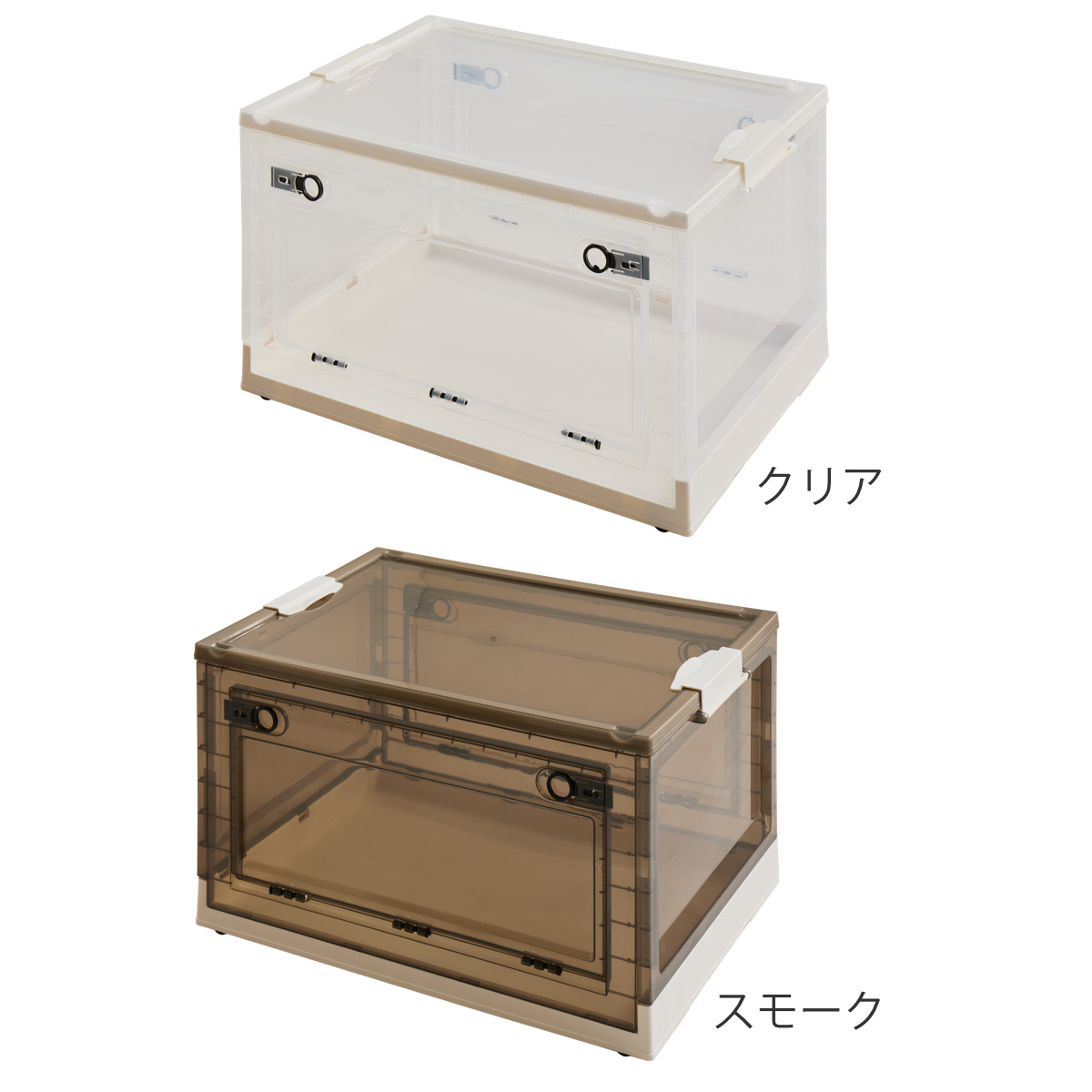 正面・背面・上部の3面から物を出し入れできる、使い勝手の良い収納ボックスです。カウンターなどの横に置いても、正面に回り込むことなくスムーズに出し入れが可能です。また、どちらのカラーも中身がほどよく見えるクリアタイプのため、収納物をひと目で確認できます。