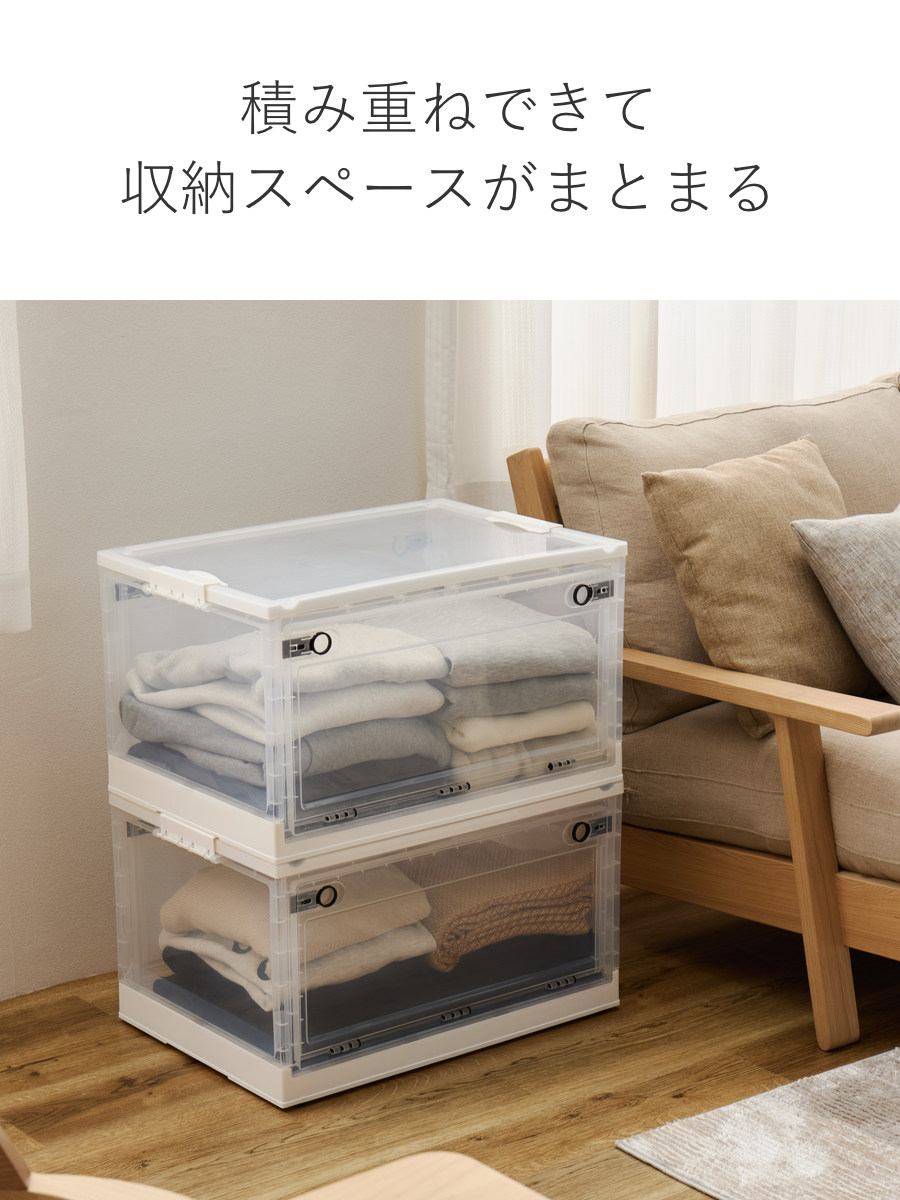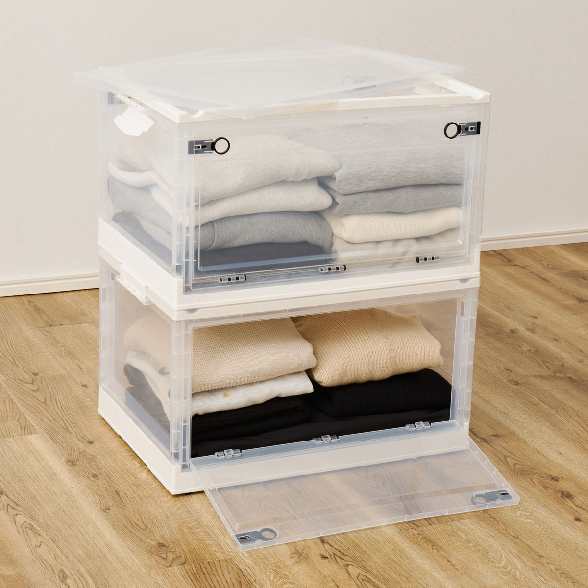 3面オープン式の積み重ねできる折りたたみ収納ケース