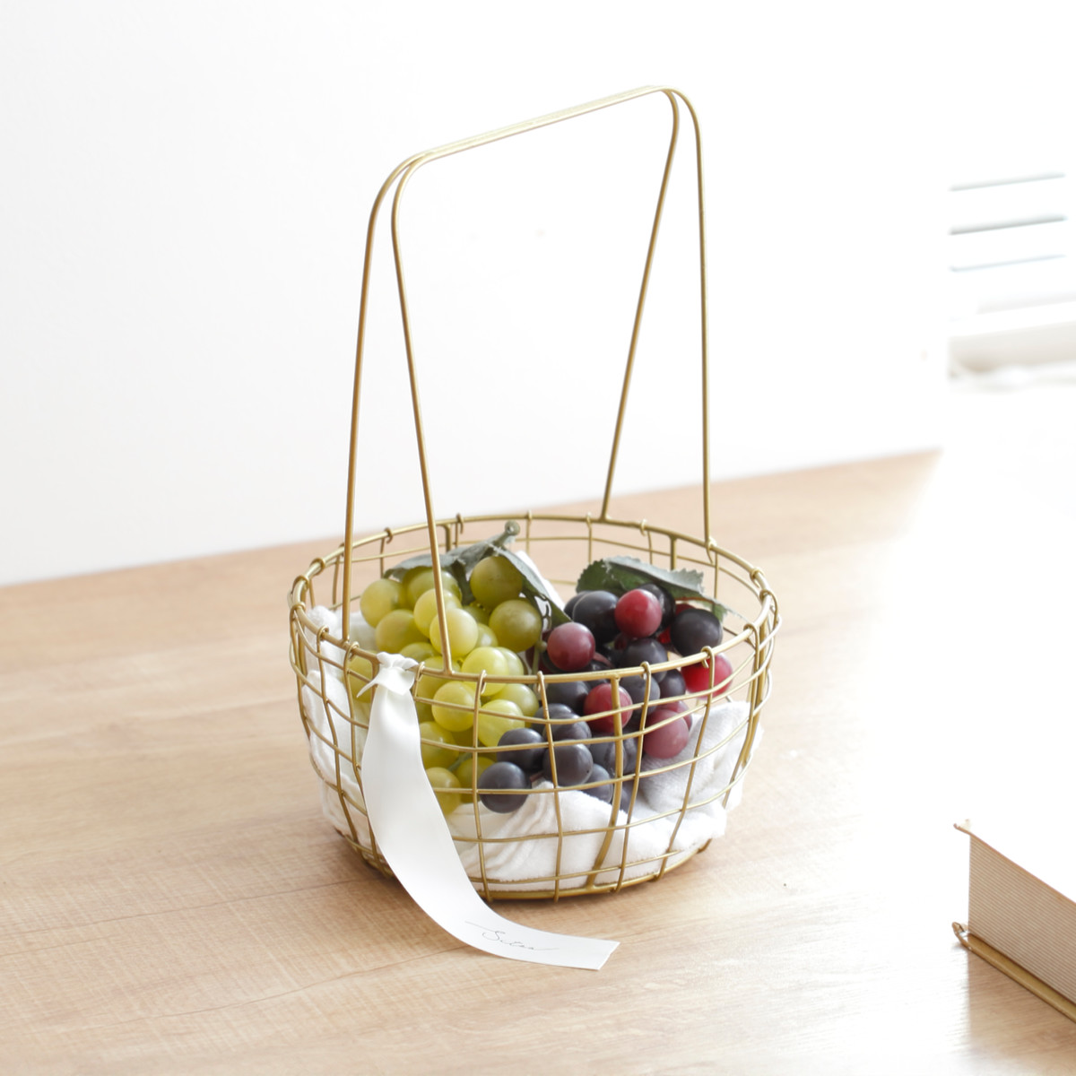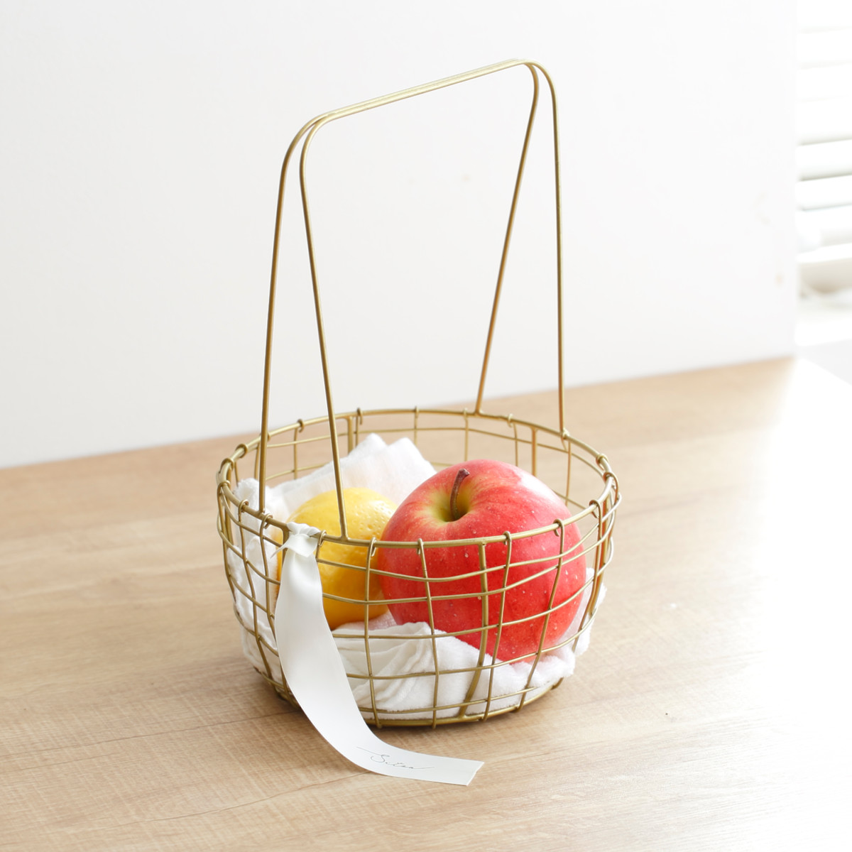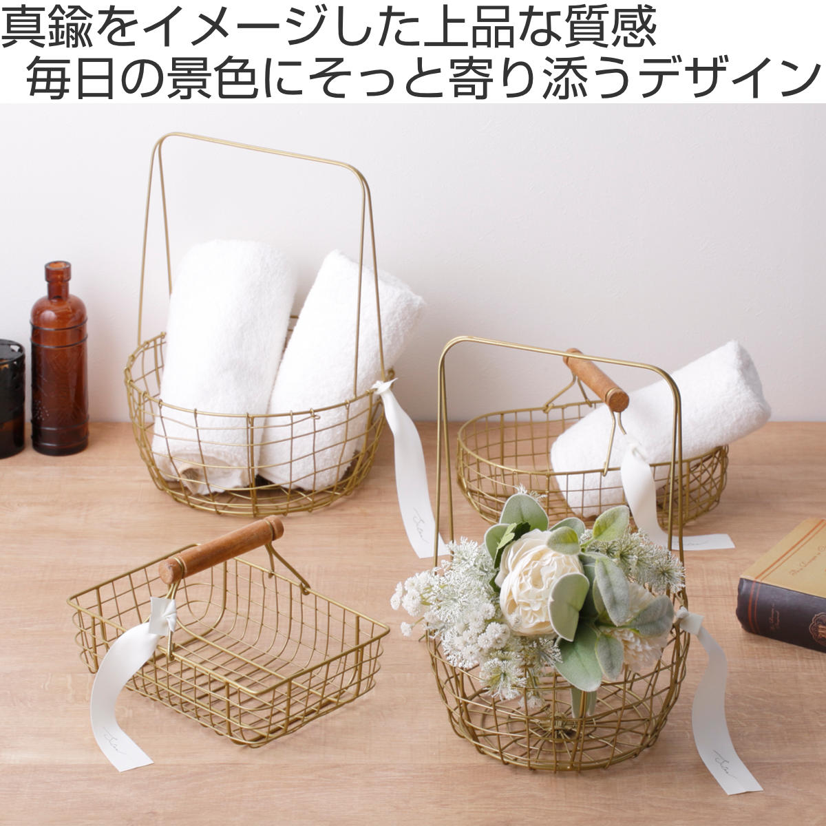 真鍮をイメージしたゴールドカラーが、空間にさりげない華やかさを添えるワイヤーバスケットです。使う場所を選ばずお家のどこに置いても自然になじみ、インテリアを上品に引き立てます。