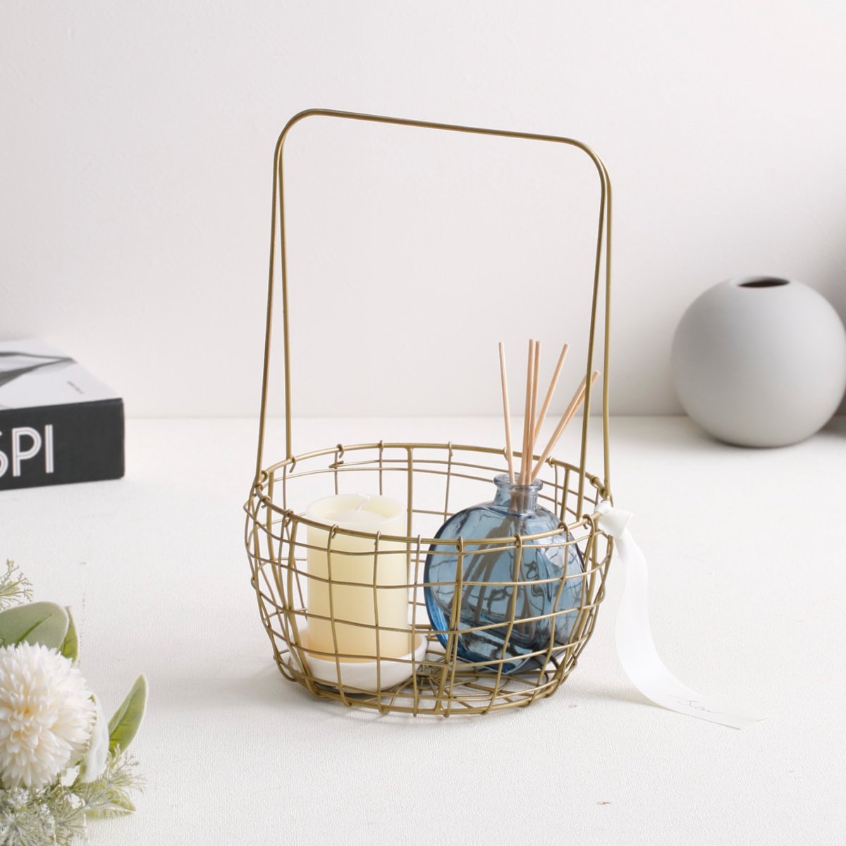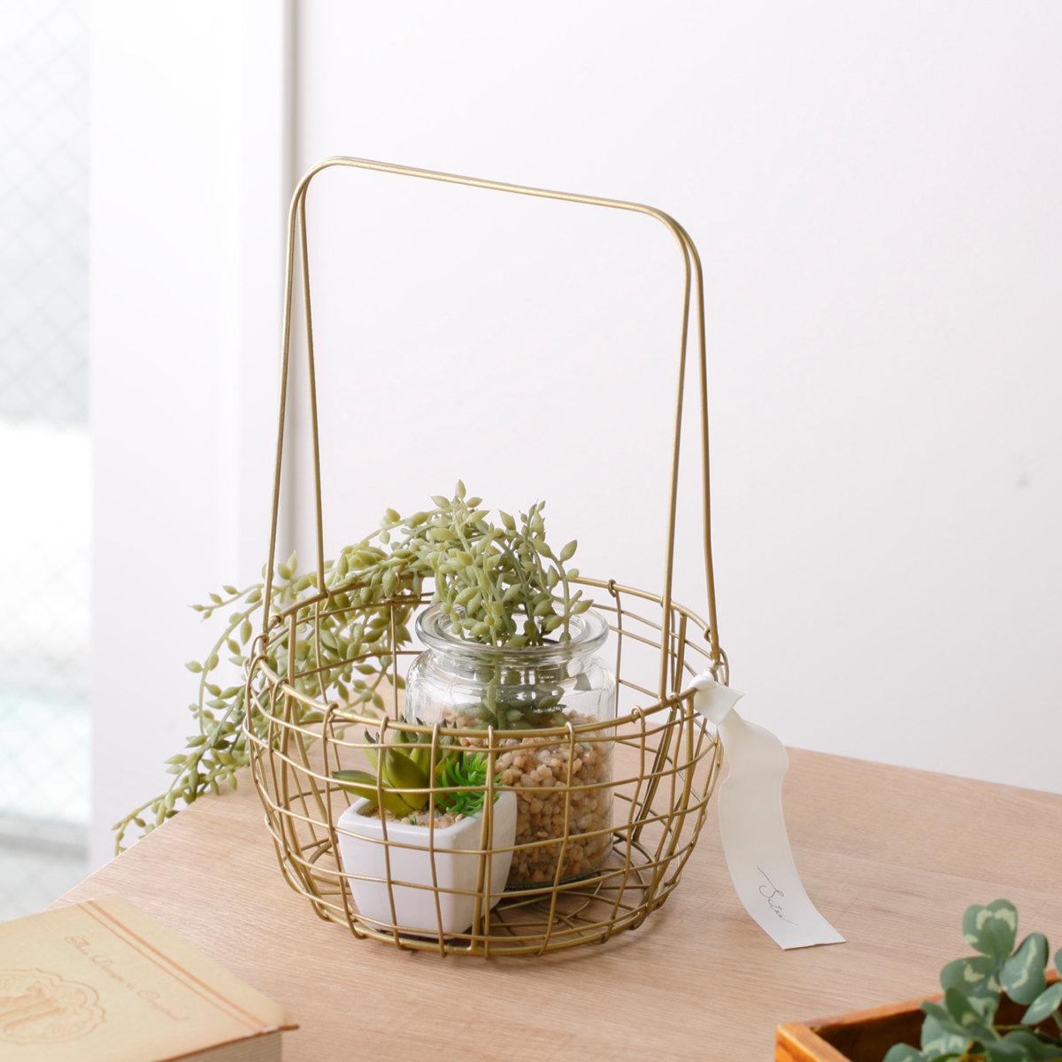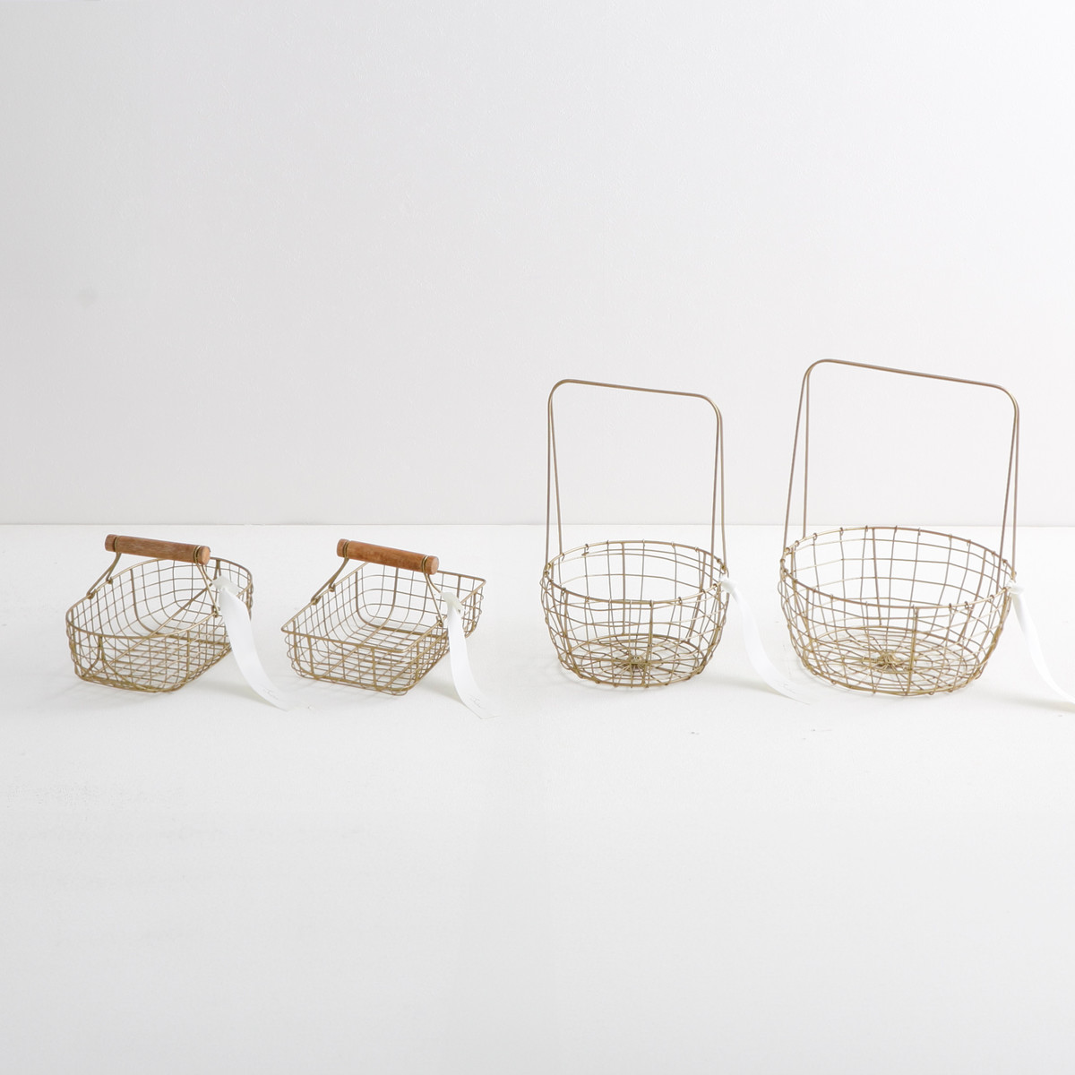 真鍮をイメージしたゴールドカラーが、空間にさりげない華やかさを添えるワイヤーバスケットです。使う場所を選ばずお家のどこに置いても自然になじみ、インテリアを上品に引き立てます。