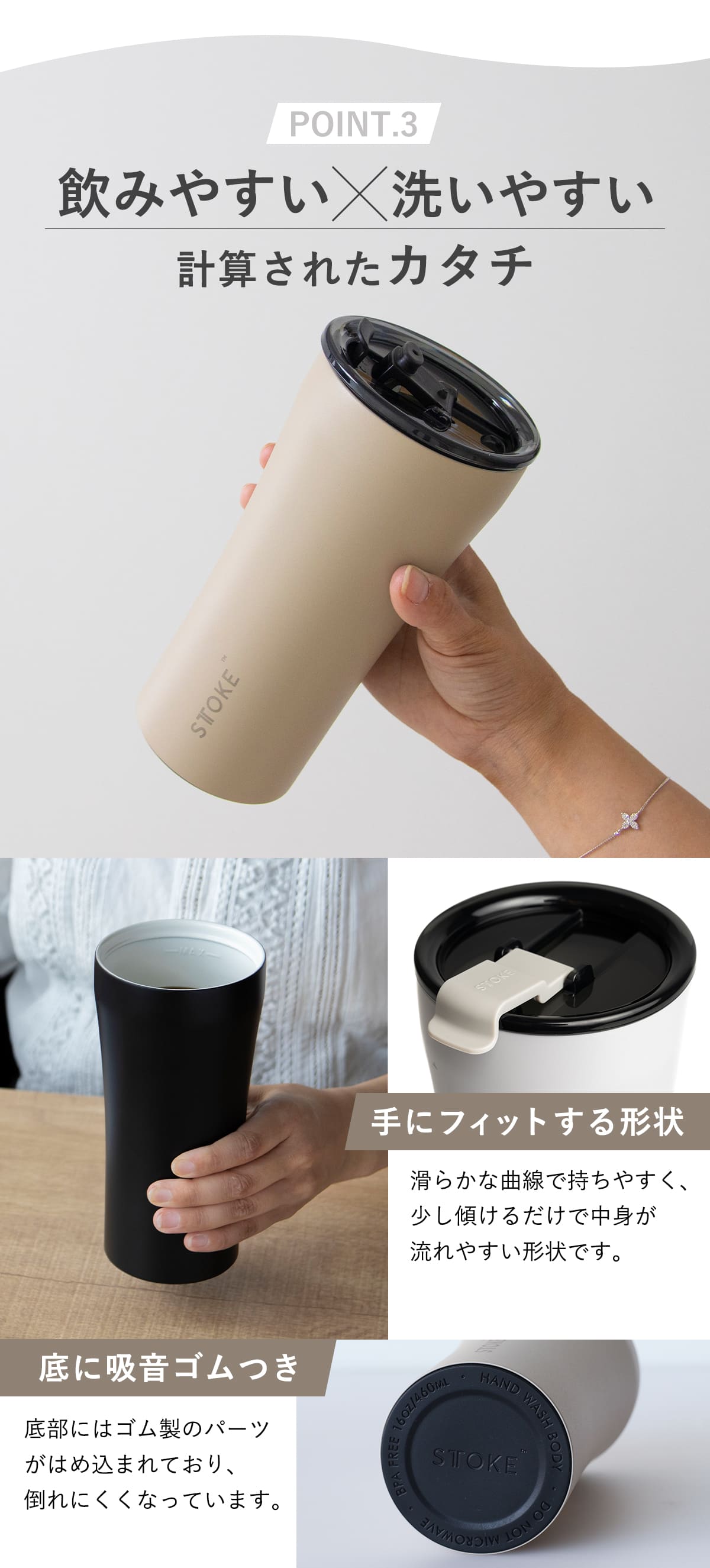 | 材質 | 本体:ステンレス、セラミックコーティング フタ:プラスチック(BPAフリー)、シリコンゴム |