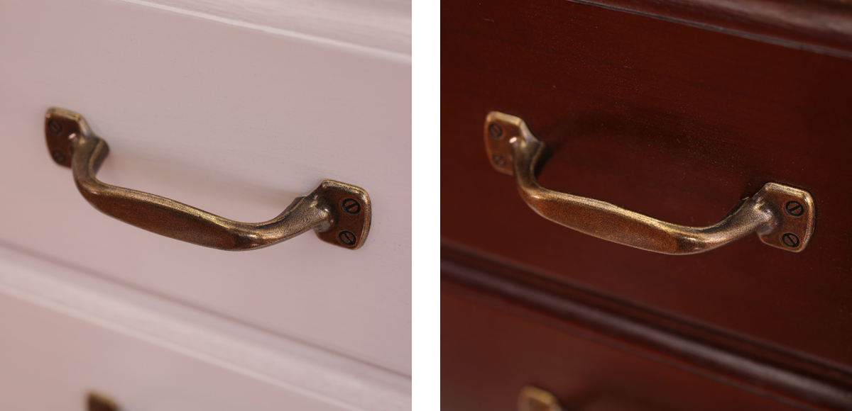 亜鉛合金のアンティーク調の取っ手が付いており、デザインのアクセントになっています。