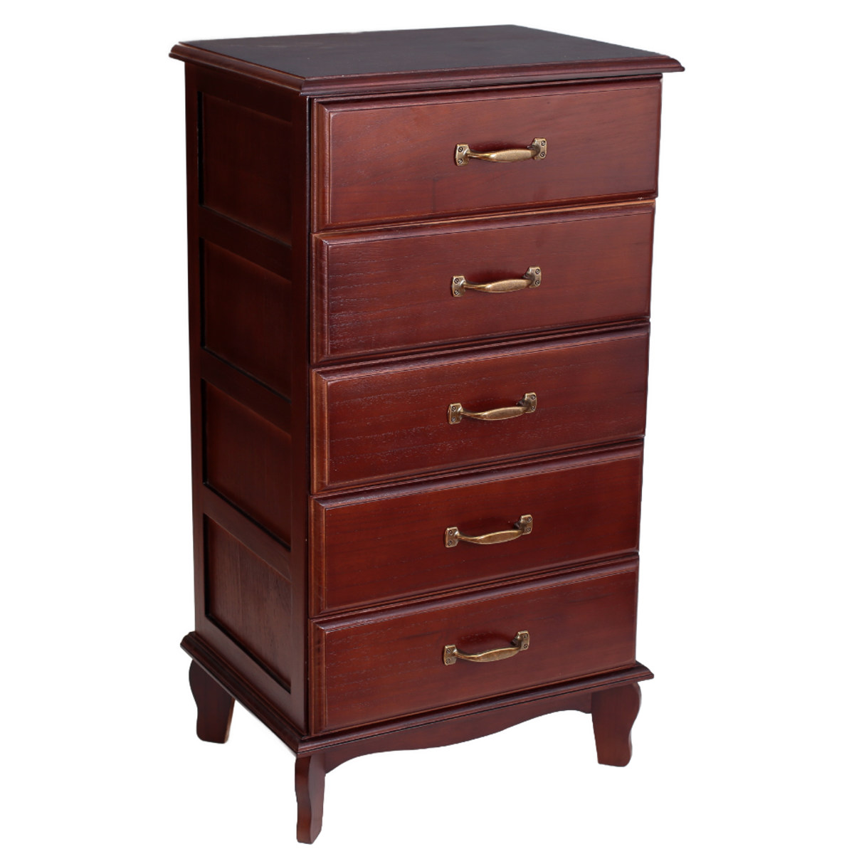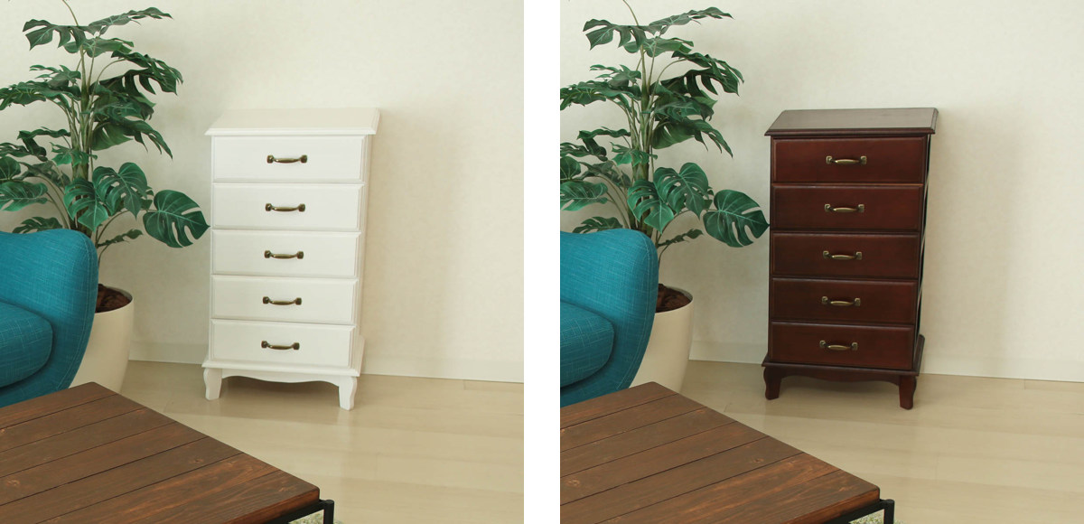 和洋を問わずあらゆるインテリアにマッチする桐製チェストです。年月を経たようなアンティーク調の雰囲気がお部屋に重厚感をプラスしてくれます。小物などの収納に便利な引出しが5杯付いています。