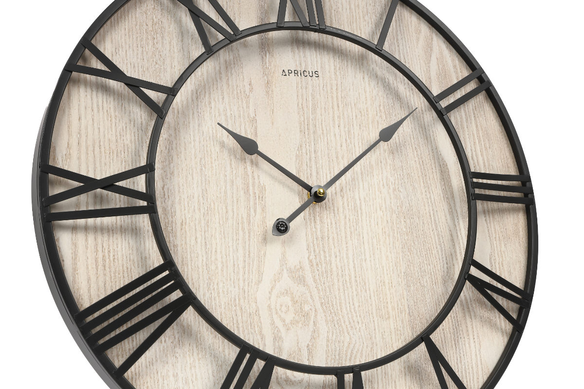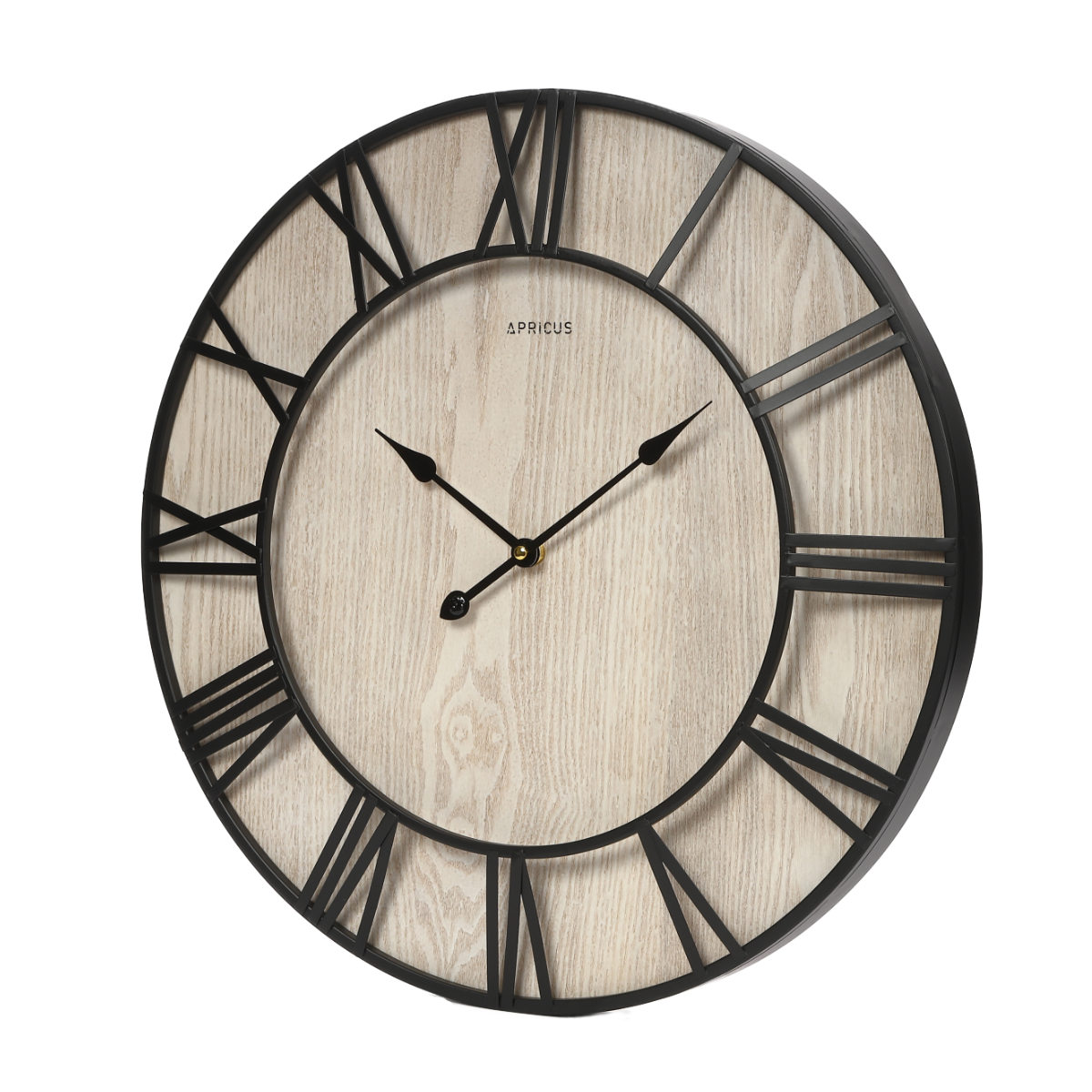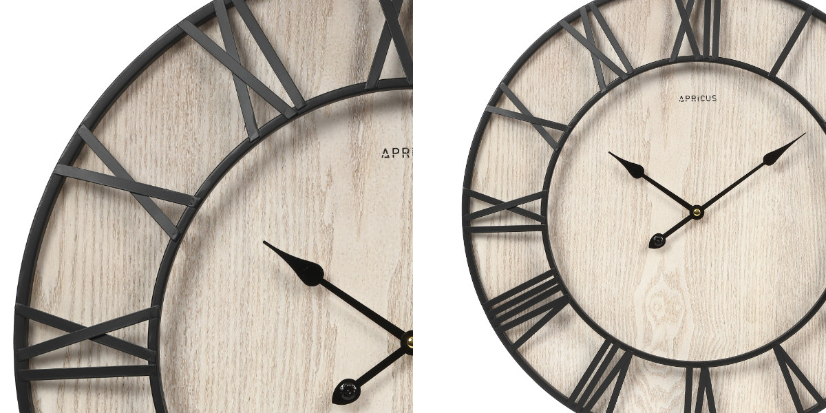 明るい木目調の文字盤にブラックのフレームと数字を合わせた、やさしく落ち着いた配色。ナチュラルテイストはもちろん、モダンや北欧風のインテリアにも合わせやすく、空間全体に温かみをプラスします。