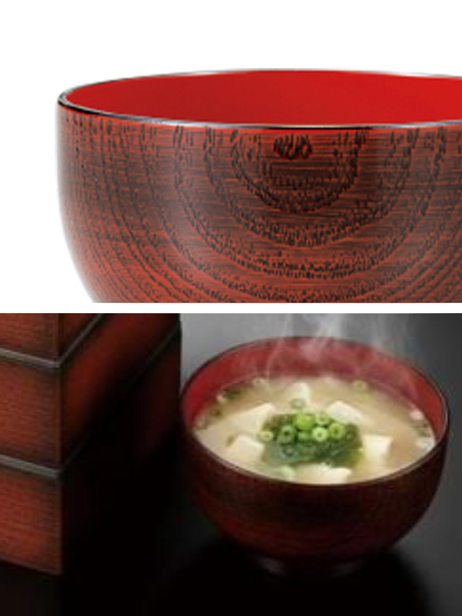 味噌汁やスープの具材が映え、食卓を明るくあたたかな印象にしてくれます。木目調の外側とのコントラストも美しく、毎日の食事をより美味しそうに演出します。