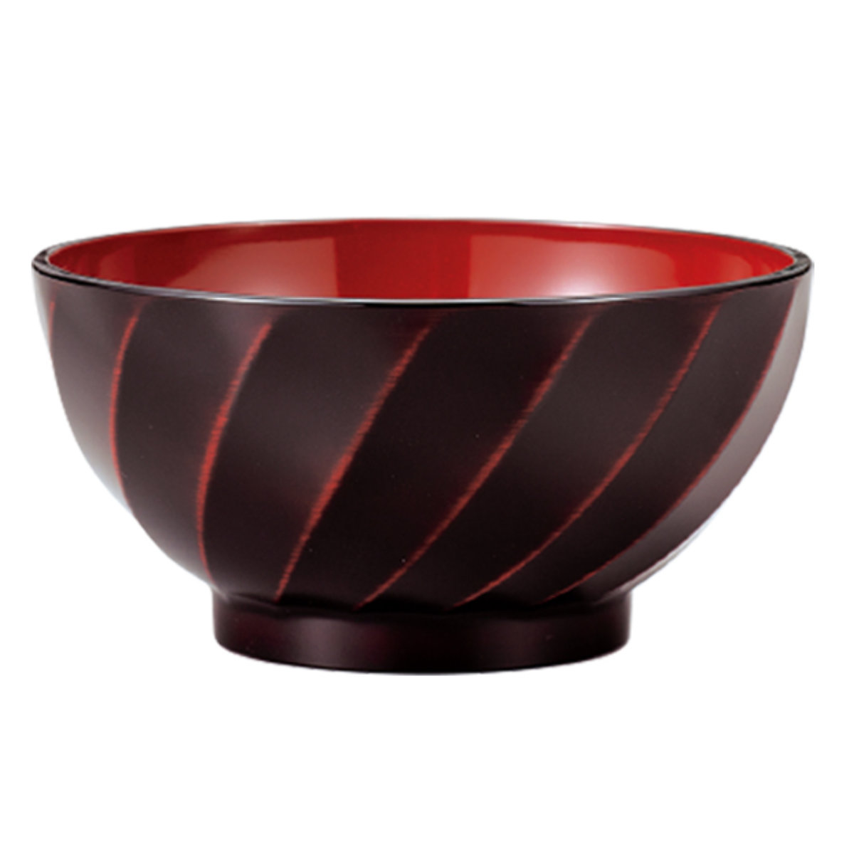 赤い内側は、飲み物や具材の色をより鮮やかに見せて、見た目にも美味しさを感じさせます。麺類や丼ものの彩りを引き立ててくれます。