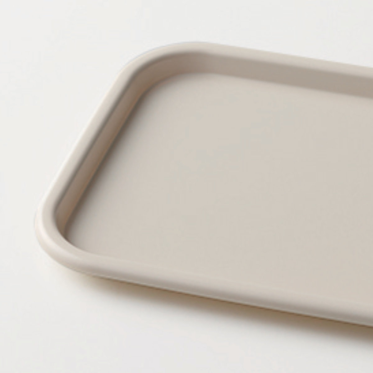 一人分の食事や軽食をまとめて運べる、コンパクトなレンジトレイです。薄型なので重ねて収納しても場所を取らず、すっきり収まります。軽くて割れにくいので、小さなお子様やお年寄りのいるご家庭でも安心してお使いいただけます。