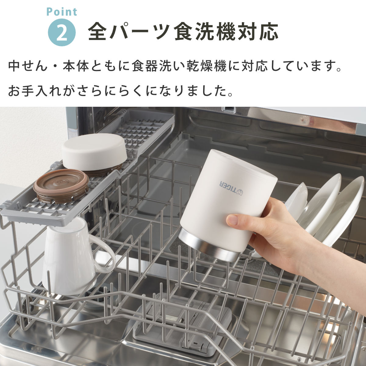 パッキン一体型せん&食洗機対応でお手入れ簡単
