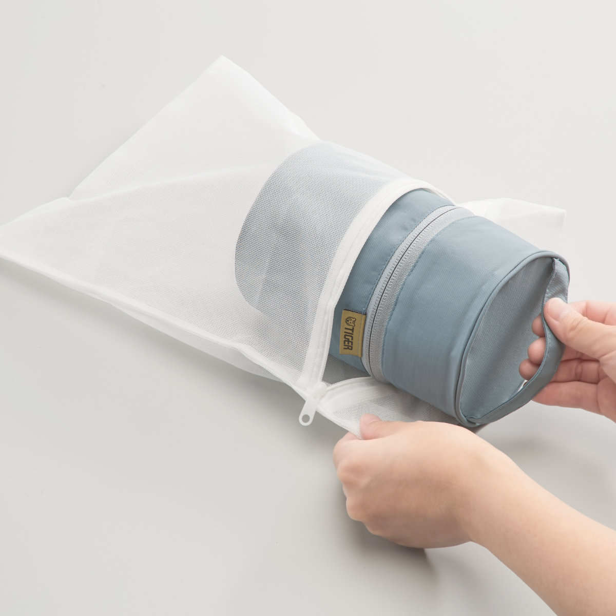 ポーチが汚れた際にはご自宅の洗濯機で洗っていただけます。ネットに入れて、手洗いコースを選択してください。