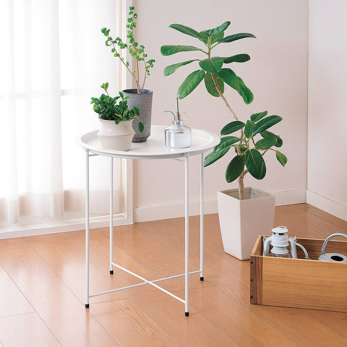 ●ソファやベッドサイドテーブルとして、また観葉植物を載せる植物スタンドとしても使えるトレイテーブルです。