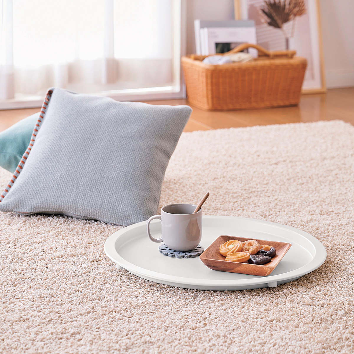 天板は簡単に取り外すことができ、トレーとしても使えます。飲み物やお菓子を一度に沢山運べてとても便利です。